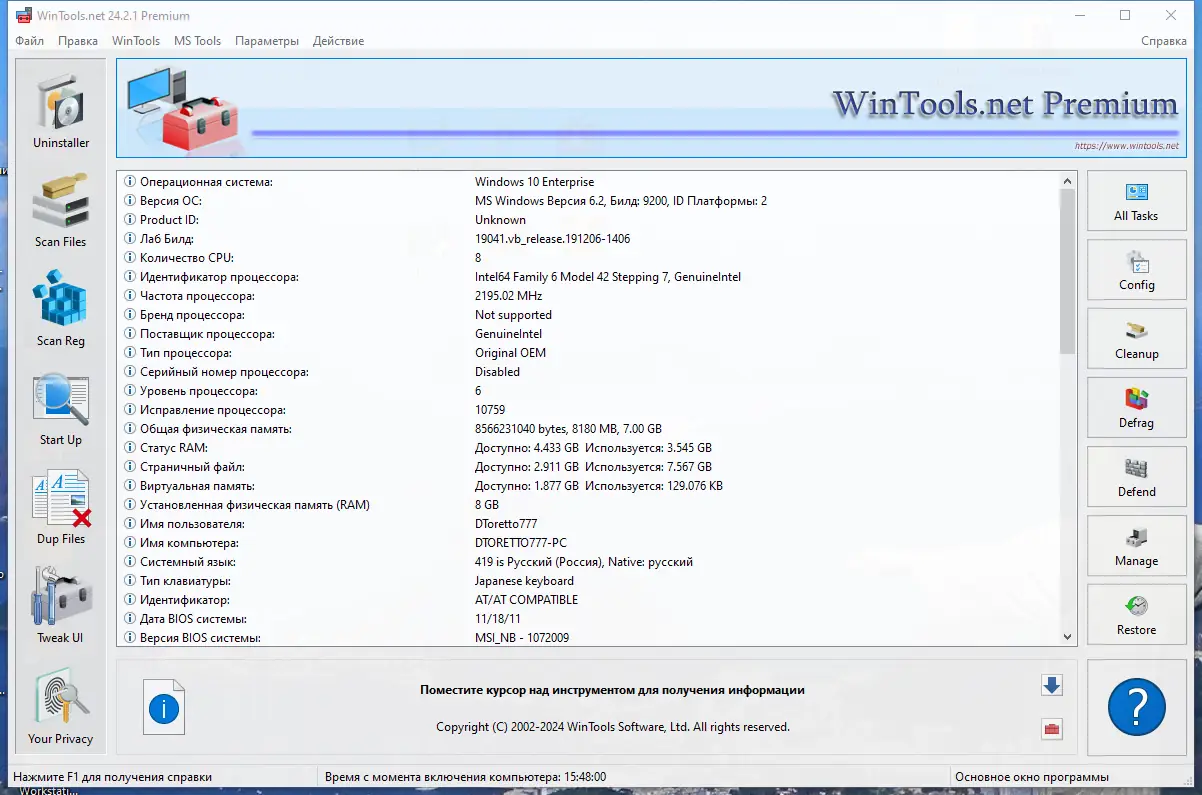 WinTools.net сочетает в себе широкие функциональные возможности и простоту управления, что делает его ценным инструментом для пользователей, стремящихся поддерживать систему в идеальном состоянии. Программа работает стабильно на различных версиях Windows и не требует значительных ресурсов. При этом она охватывает практически все аспекты, связанные с производительностью и безопасностью операционной системы.