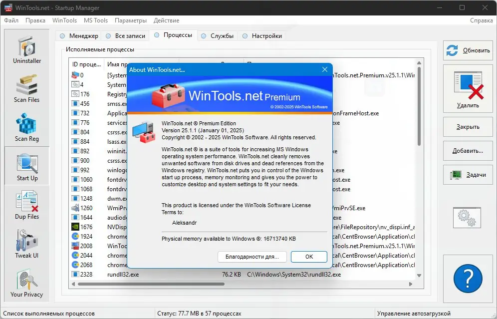 - StartUp Manager даёт полный контроль над программами, запускающимися при старте системы, включая те, что скрыты в реестре и не отображаются в стандартных настройках.