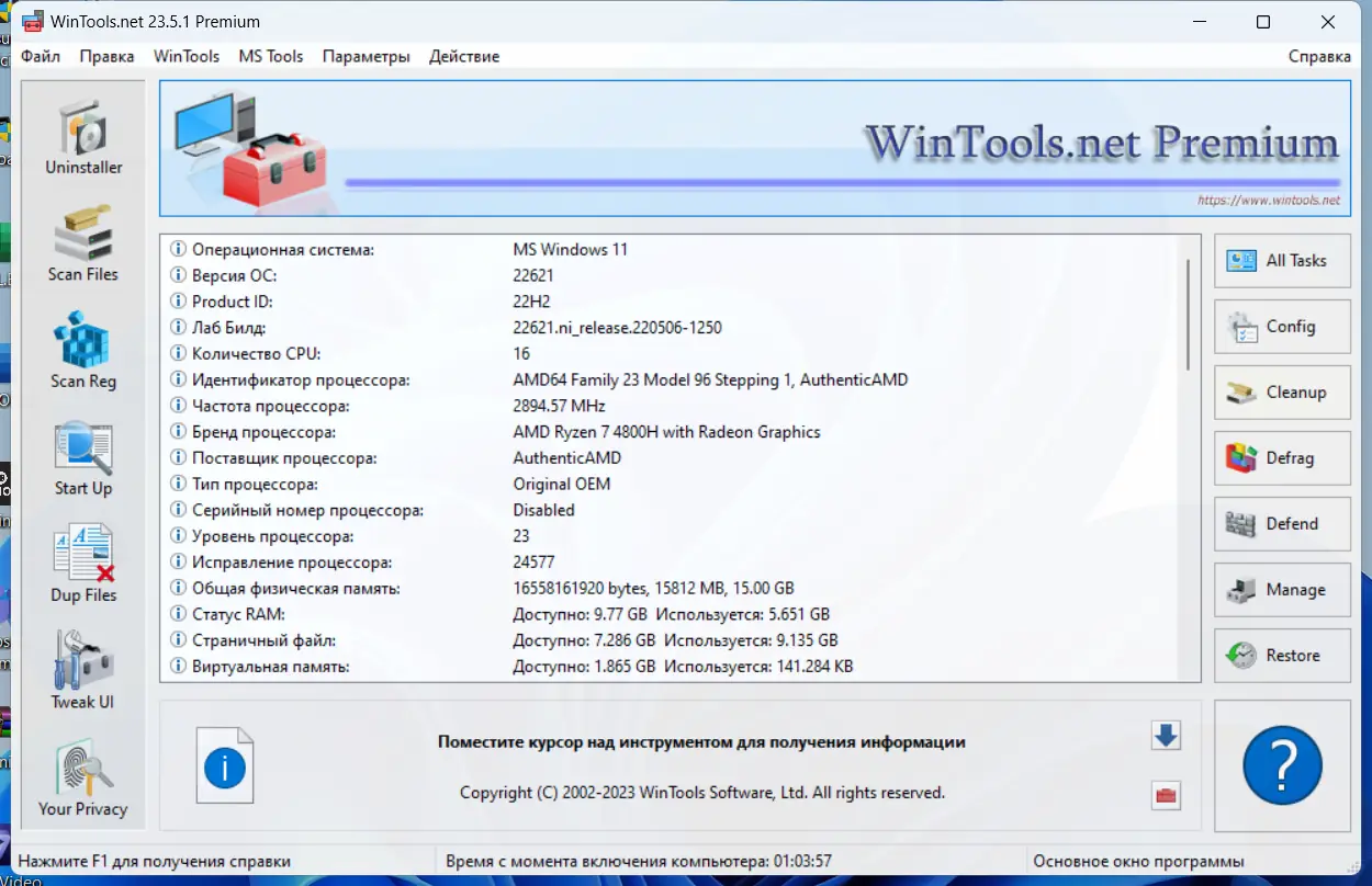 WinTools.net отличается высокой эффективностью и стабильностью в работе на различных версиях Windows. Программа не перегружена визуальными эффектами, что положительно сказывается на её производительности. Все изменения можно отменить, а резервные копии реестра создаются автоматически перед внесением критических правок. При этом утилита остаётся компактной и не требует значительных системных ресурсов для функционирования.