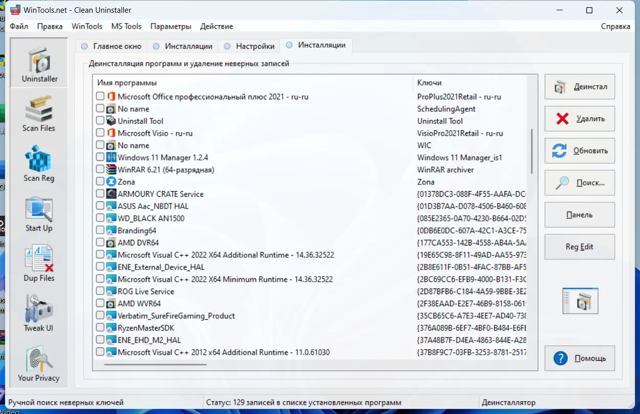 - Удаление программ с полной очисткой следов установки