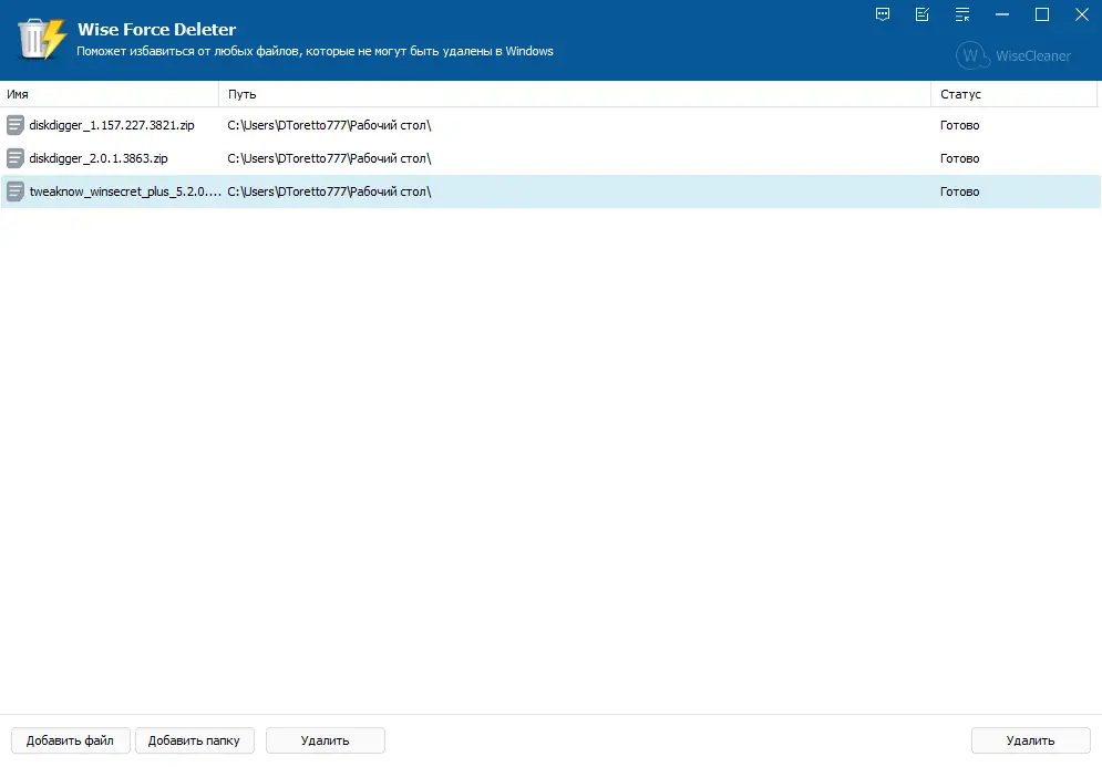 Как пользоваться Wise Force Deleter