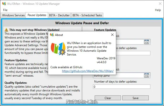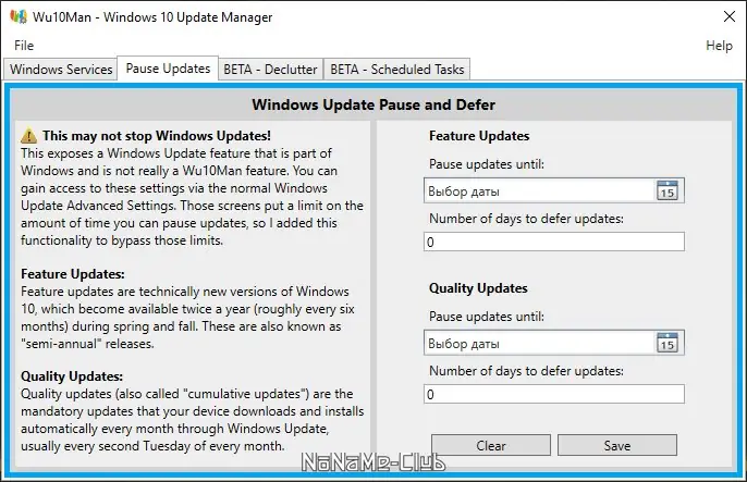 - Поддержка длительной приостановки обновлений, в отличие от ограничений встроенного центра обновления.
