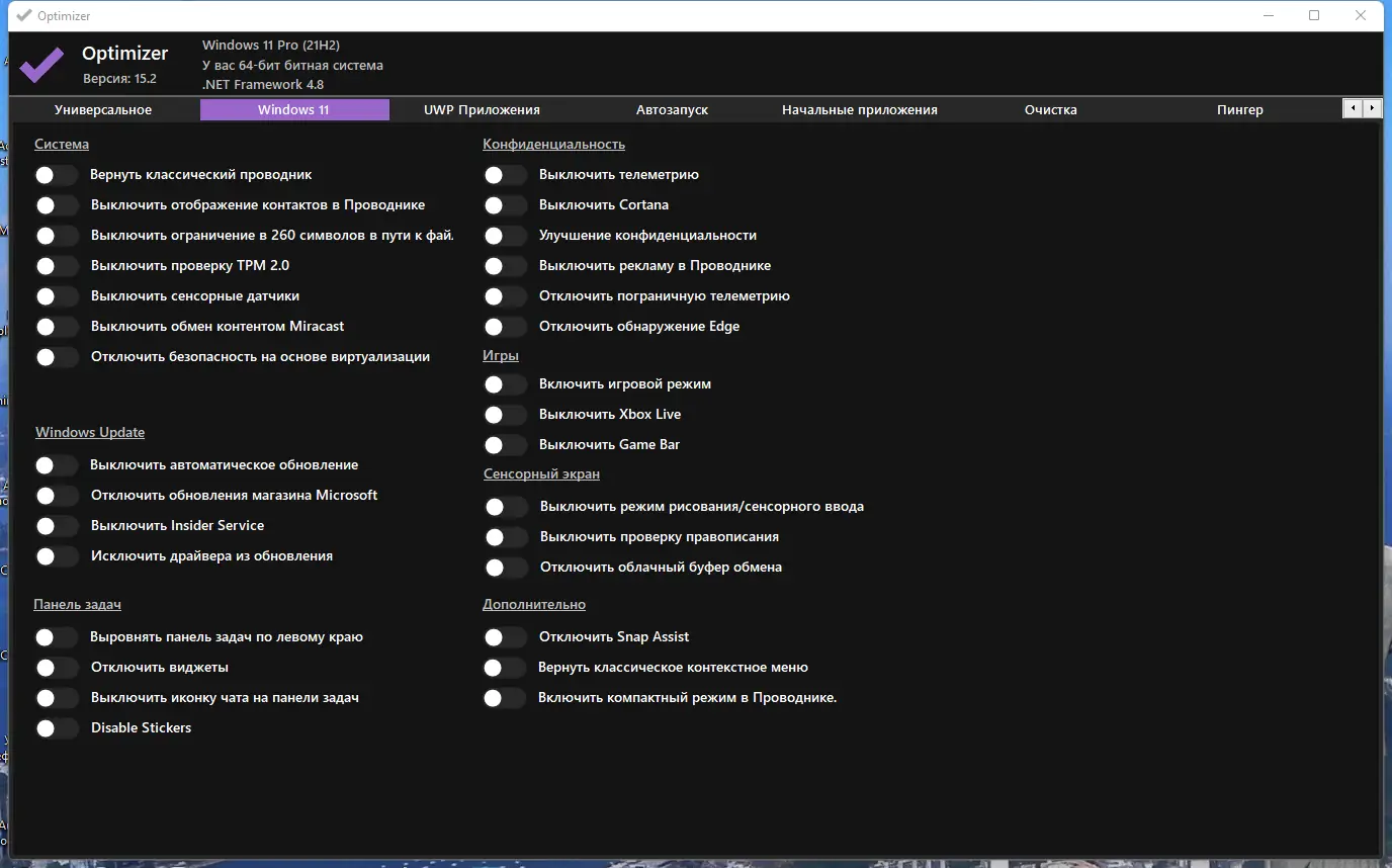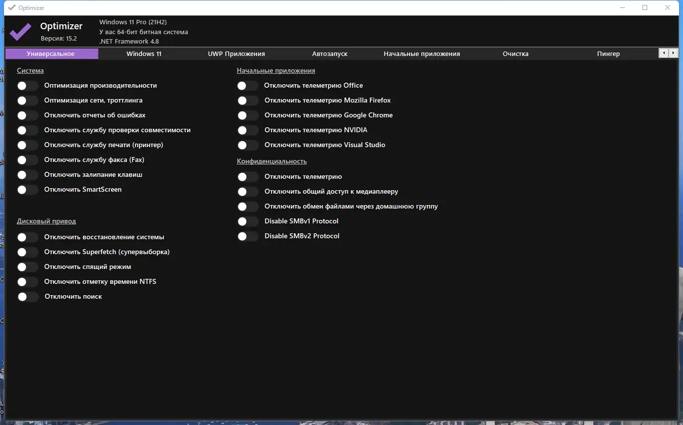 Optimizer — это не просто утилита, а комплексное решение для тех, кто ценит приватность и хочет полностью контролировать свою систему.