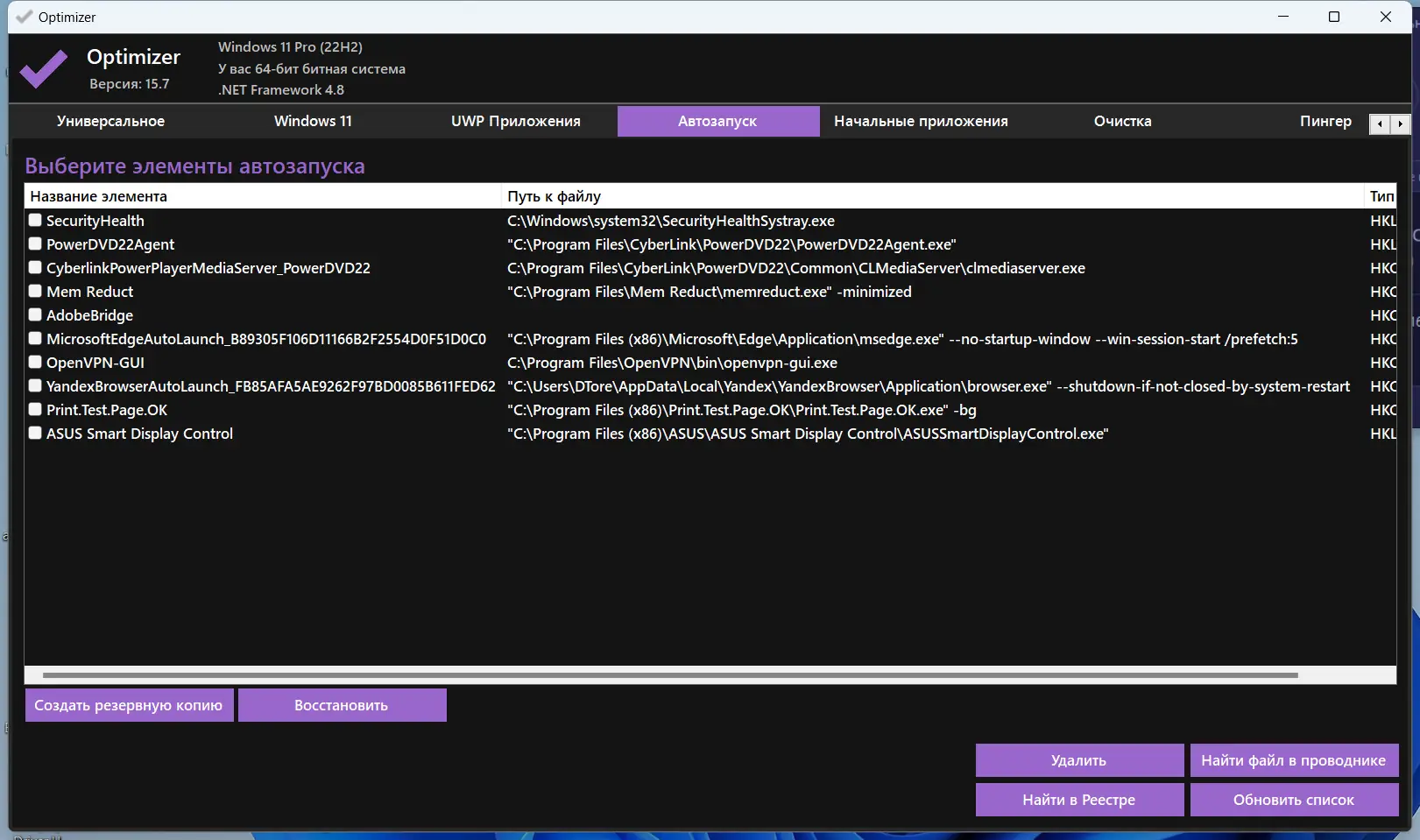 Optimizer не требует постоянного запуска в фоне — все изменения вступают в силу после перезагрузки, что делает её эффективной и экономичной в использовании.