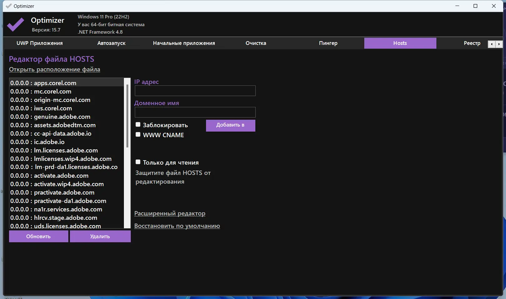 Optimizer представляет собой системную утилиту, разработанную для тонкой настройки операционной системы с акцентом на безопасность и производительность. Она сочетает в себе функции оптимизатора, менеджера автозагрузки, реестрового редактора и сетевого помощника, позволяя пользователю управлять множеством параметров централизованно. Программа поддерживает широкий спектр операций — от отключения телеметрии до очистки кеша DNS и редактирования файла hosts. Особое внимание уделено пользователям, заботящимся о конфиденциальности: можно легко деактивировать сбор данных Microsoft, включая компоненты Cortana и Xbox Live. Также предусмотрена возможность удаления UWP-приложений, которые по умолчанию идут в комплекте с Windows.