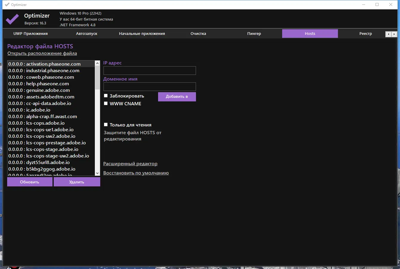 - Позволяет отключать телеметрию Windows и компоненты, связанные с передачей данных, что повышает уровень конфиденциальности.
