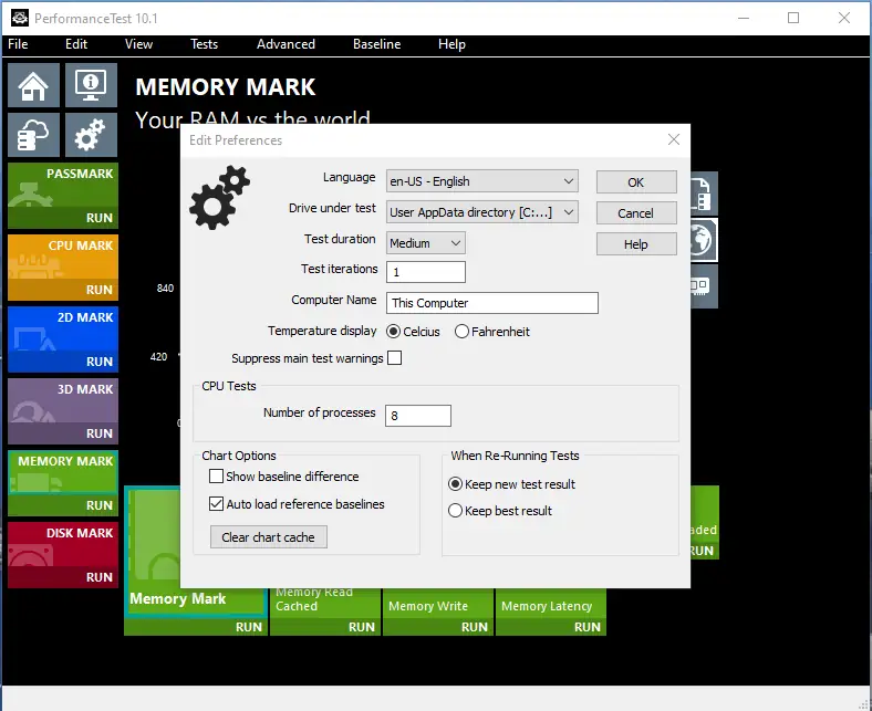 Использование PassMark PerformanceTest не требует глубоких технических знаний, хотя интерфейс ориентирован на английский язык. После запуска приложения пользователь может выбрать один из готовых тестовых наборов или настроить собственный профиль проверки. Запуск тестов осуществляется в несколько кликов, при этом система автоматически выполняет все необходимые операции: от математических вычислений до рендеринга 3D-сцен и проверки скорости дисков.