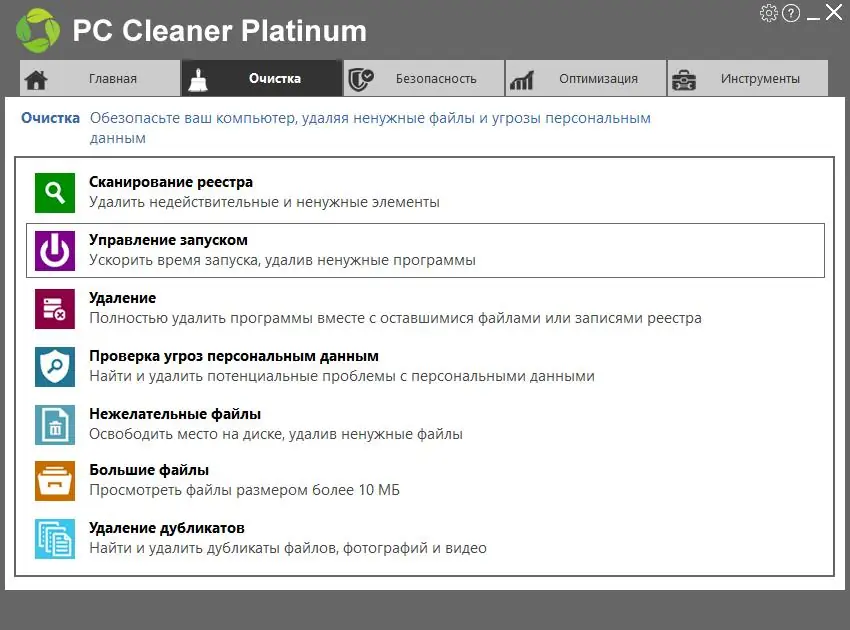 PC Cleaner Platinum представляет собой многофункциональную утилиту, ориентированную на улучшение производительности персонального компьютера под управлением операционной системы Windows. Она включает в себя набор инструментов для диагностики и устранения системных проблем, очистки дискового пространства и повышения общей стабильности работы системы. Программный комплекс способен находить и удалять устаревшие записи в реестре, устранять ошибки конфигурации и управлять процессами автозагрузки.