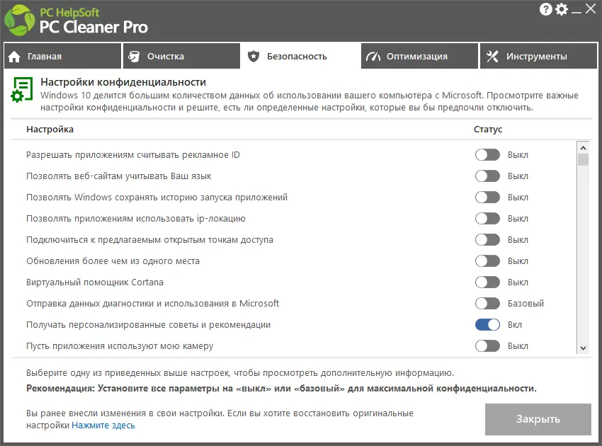 PC Cleaner сочетает в себе глубокую функциональность и простоту интерфейса, что делает его удобным решением для повседневного обслуживания системы. Программа эффективно справляется с основными причинами замедления работы компьютера, включая фрагментацию реестра и избыточные процессы при старте. При этом она не перегружает систему собственными фоновыми задачами, оставаясь легковесной и быстрой.