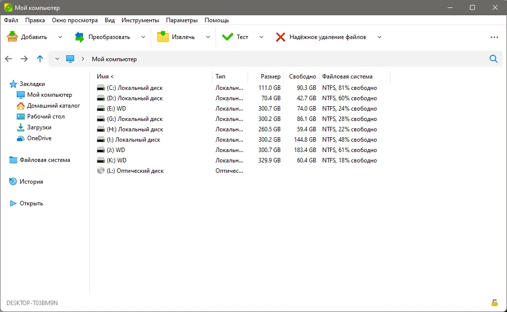 - Работа с закладками на часто используемые папки и архивы для быстрого доступа.