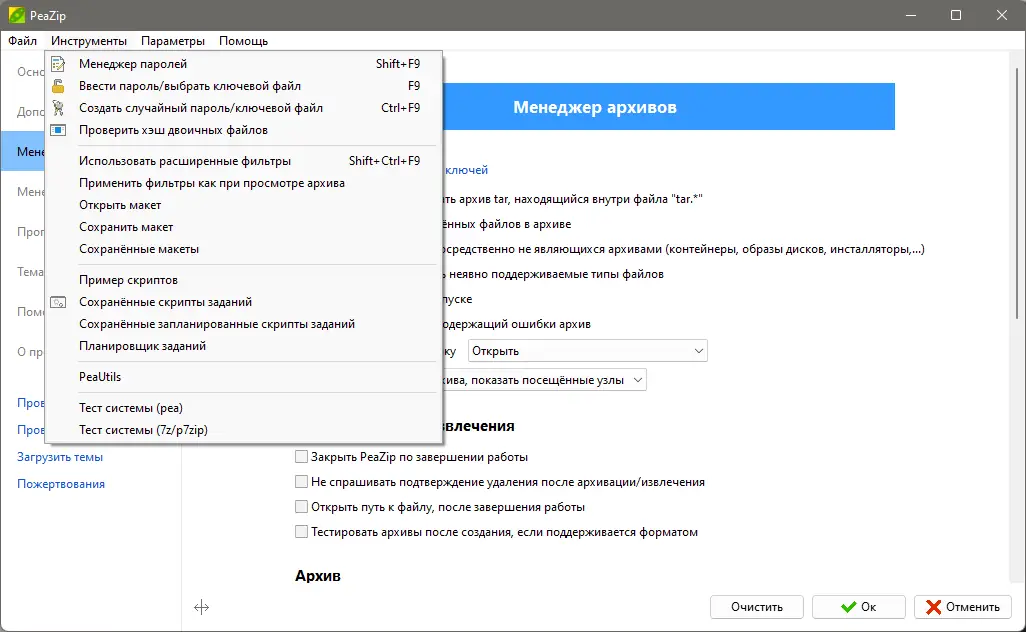 Как пользоваться PeaZip