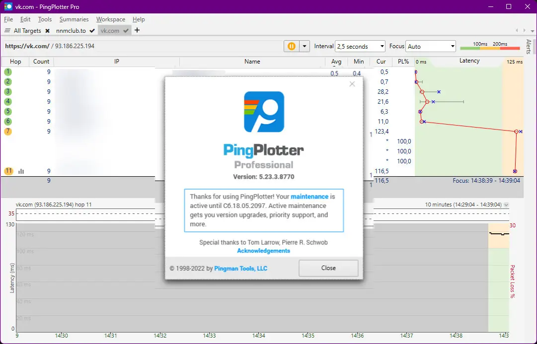 Преимущества PingPlotter включают высокую точность диагностики, гибкость настройки и возможность длительного мониторинга без вмешательства. Интерфейс, хотя и не самый современный, остаётся функциональным и понятным даже новичкам. Программа работает стабильно на всех поддерживаемых версиях Windows и не требует мощных ресурсов. Тем не менее, некоторые функции доступны только в версии pro, что может стать ограничением для пользователей, ищущих бесплатные решения. Также отсутствие встроенной поддержки IPv6 в базовой конфигурации может быть недостатком для продвинутых сетей.