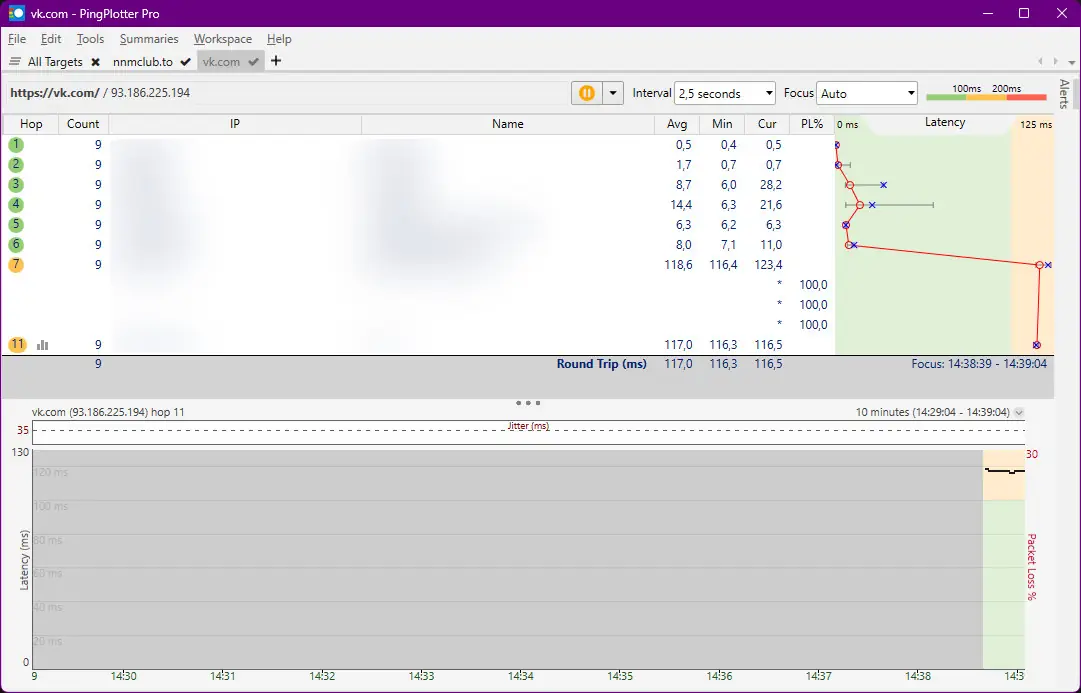 Программа эффективно локализует сетевые сбои, позволяя сосредоточиться на конкретном участке маршрута, а не на всём соединении в целом.