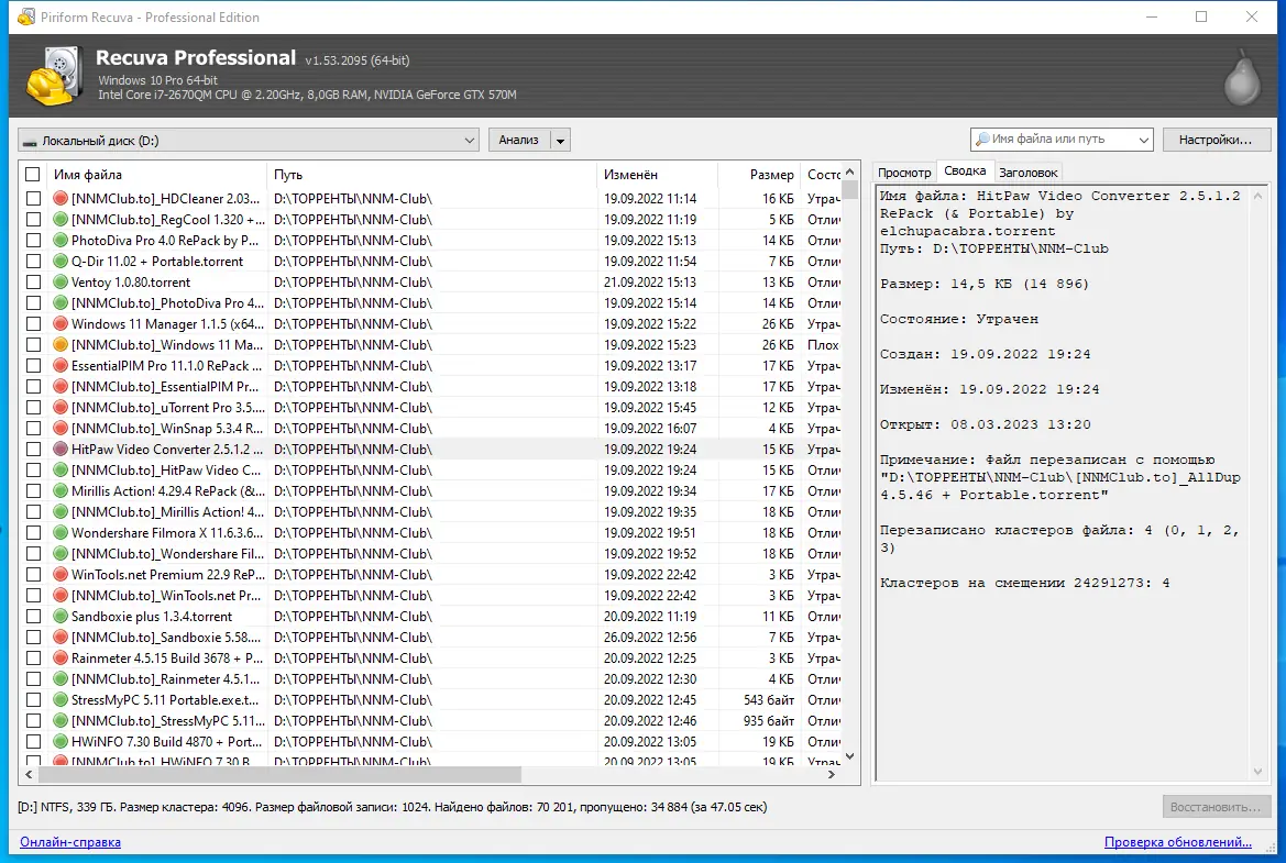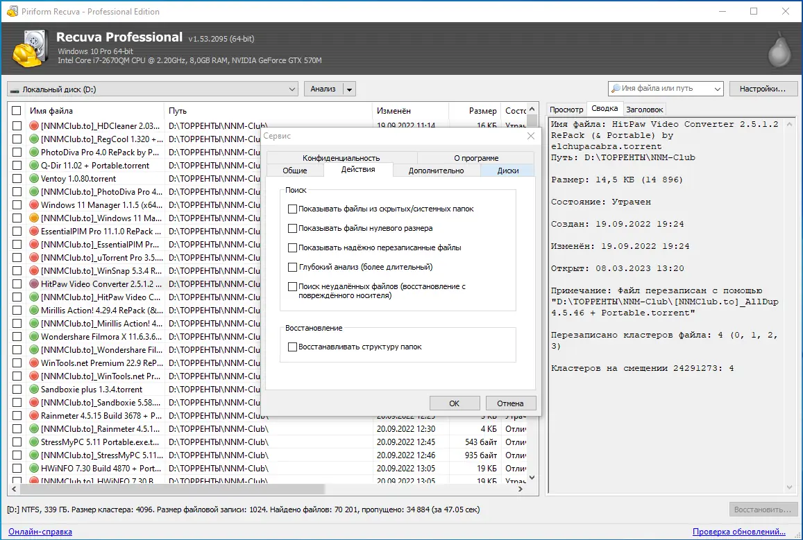 Recuva сочетает простоту использования с мощными алгоритмами анализа файловой системы.