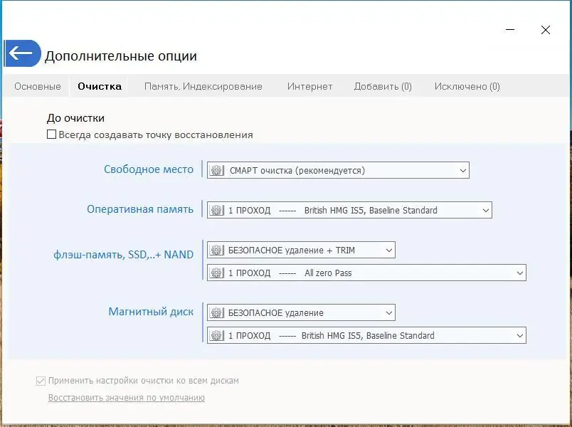- Очистка низкоуровневых компонентов файловой системы: MFT, FAT, USN Journal, Index.dat и других.