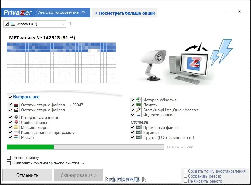 PrivaZer — это мощная система оптимизации и защиты конфиденциальных данных, предназначенная для глубокой очистки компьютера от следов активности пользователя. Программа эффективно сканирует жесткий диск, реестр, временные файлы и скрытые области системы, выявляя остатки удалённых данных. Она поддерживает сложные алгоритмы безопасного удаления, предотвращающие восстановление информации.
