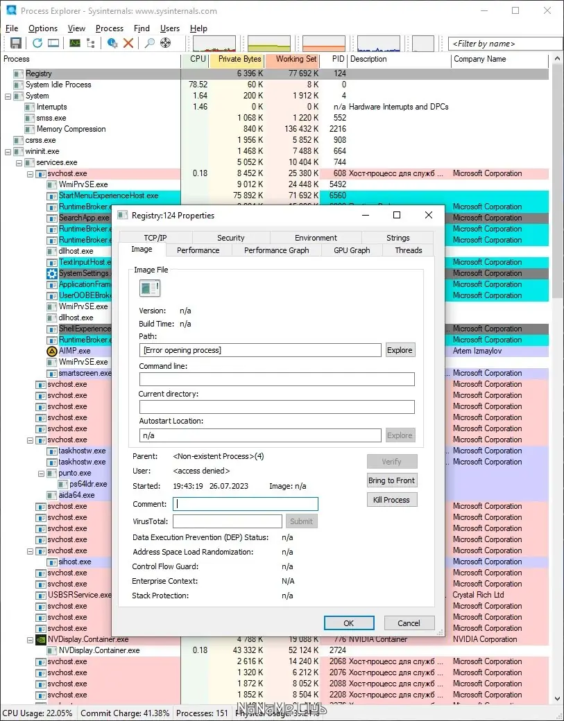 Работа с Process Explorer