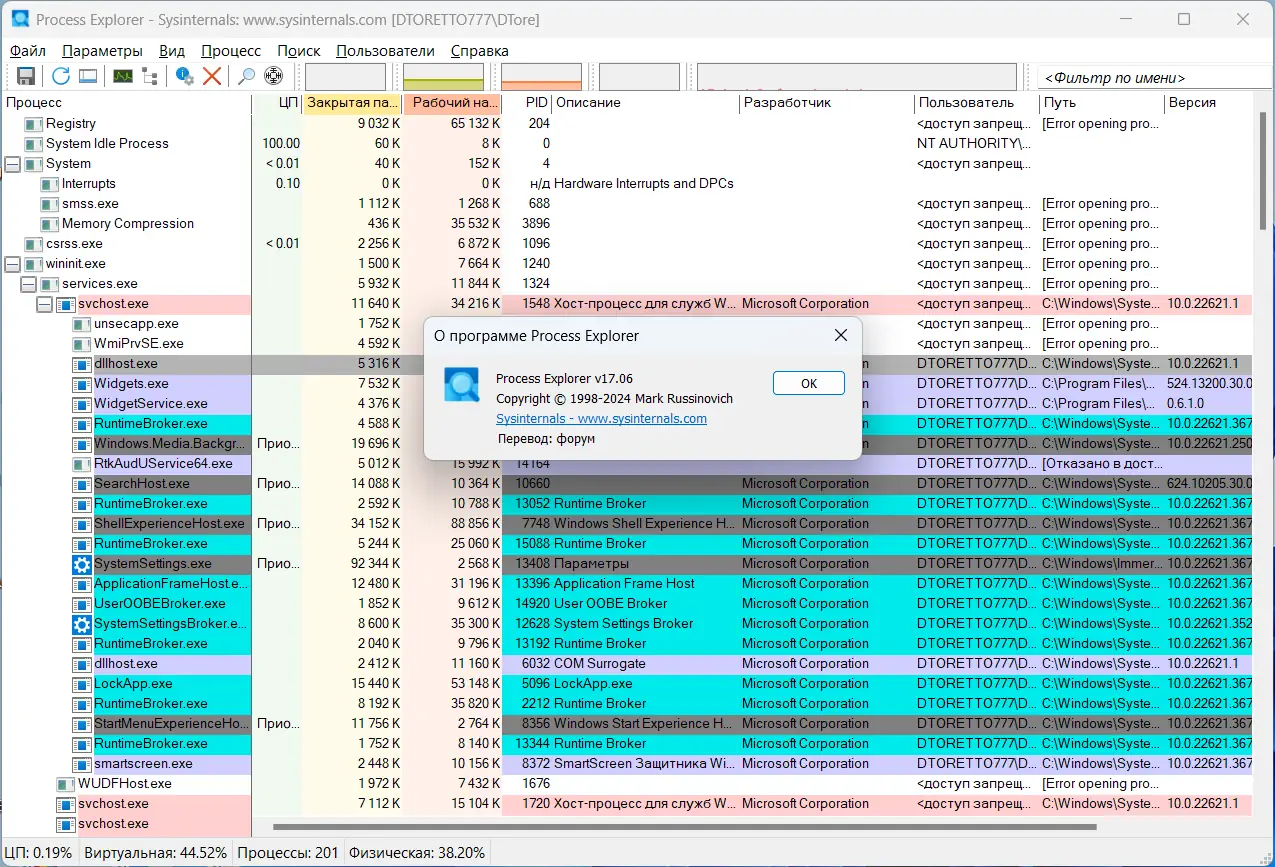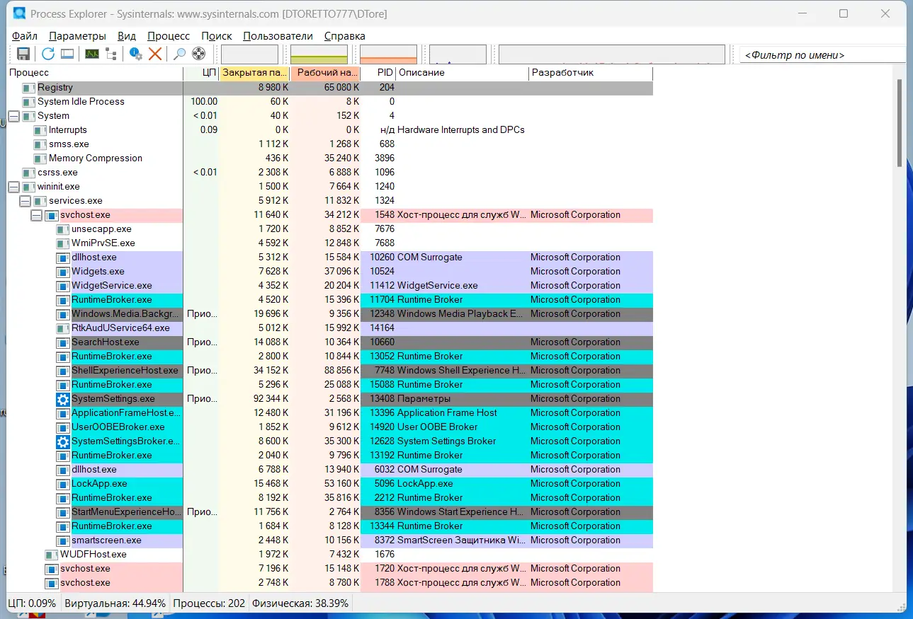 Process Explorer — это не просто замена диспетчеру задач, а полноценный инструмент диагностики и отладки системы.