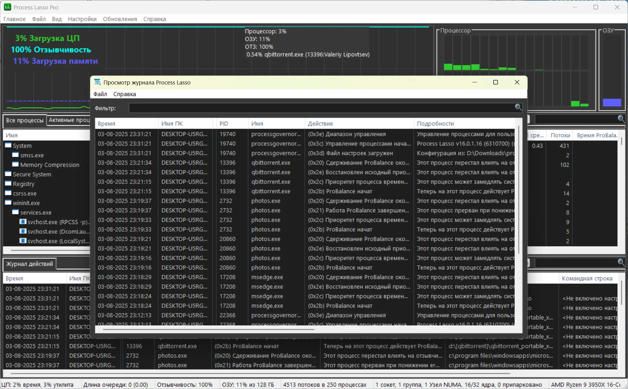 Преимущества Process Lasso заключаются в его способности поддерживать высокую отзывчивость системы даже при интенсивной нагрузке. Утилита эффективно справляется с процессами-нарушителями, не требуя ручного вмешательства. При этом она остаётся гибкой и настраиваемой, что делает её полезной как для обычных пользователей, так и для системных администраторов.