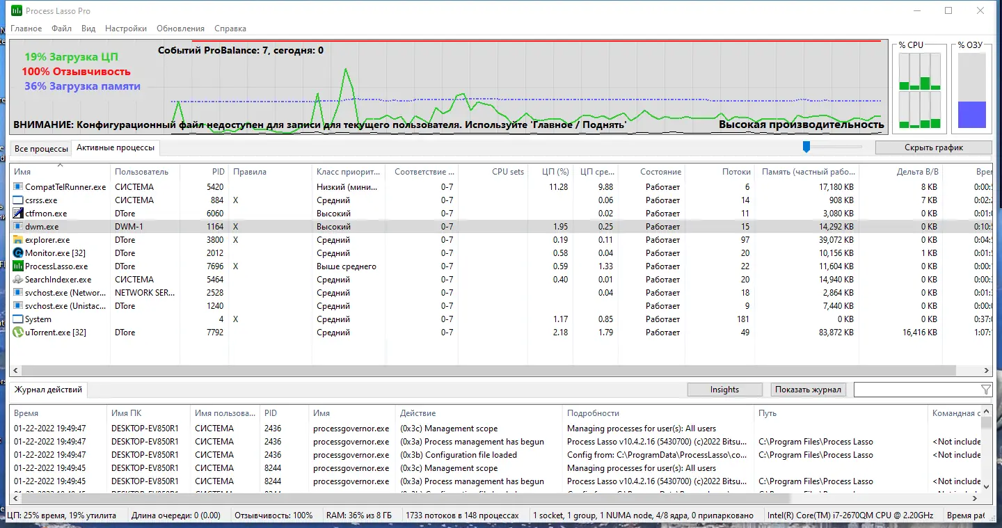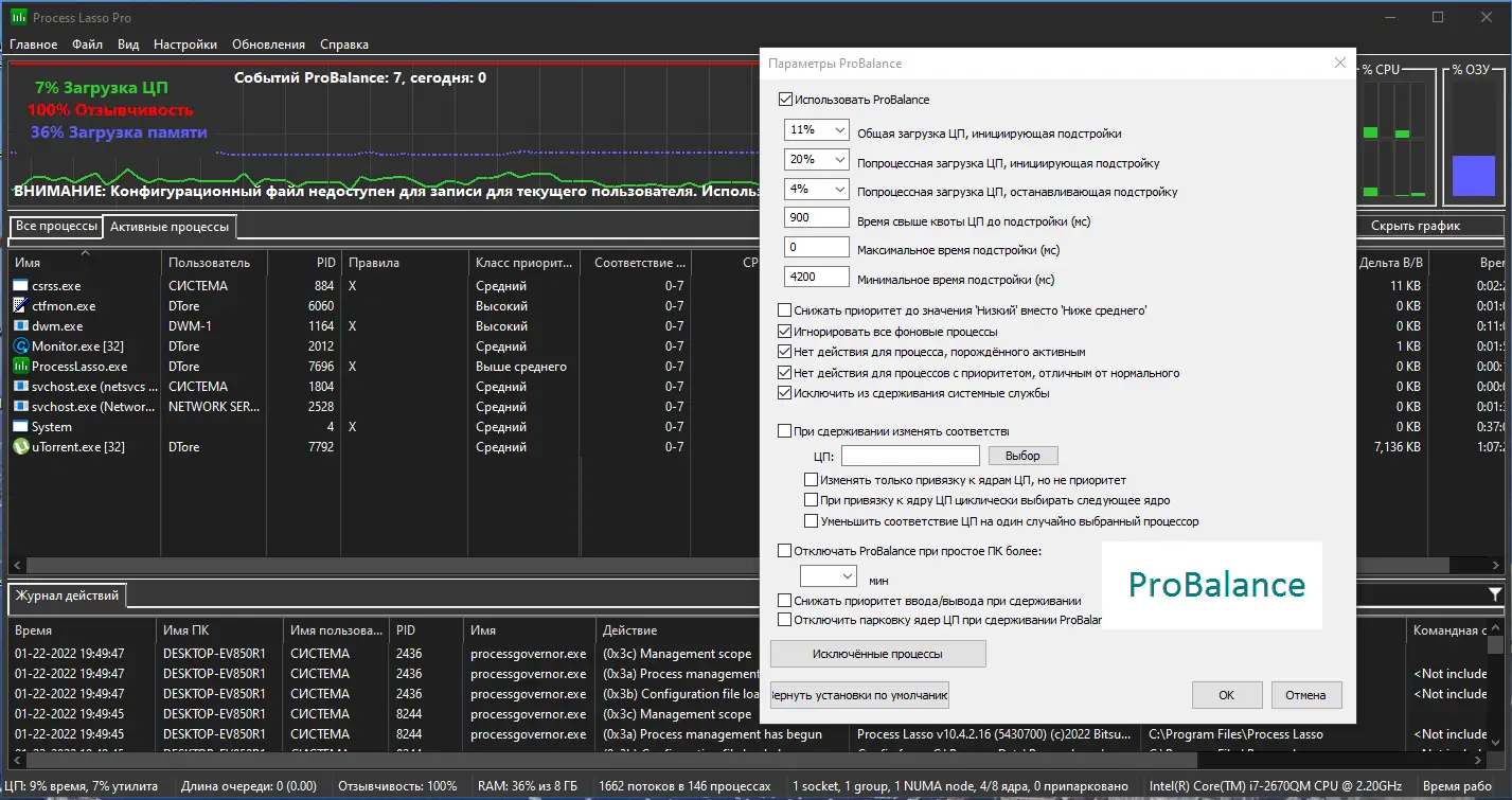 Работа с Process Lasso