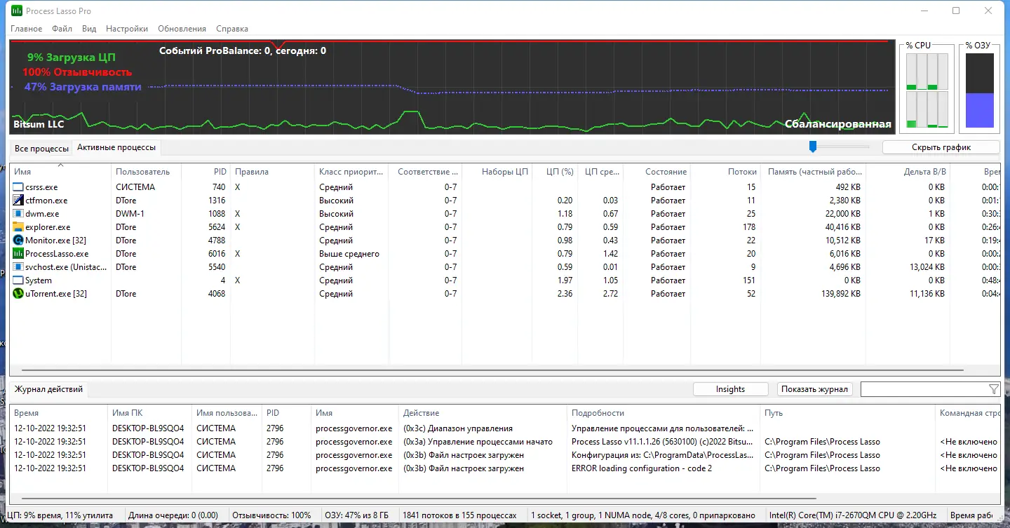 Работа с Process Lasso
