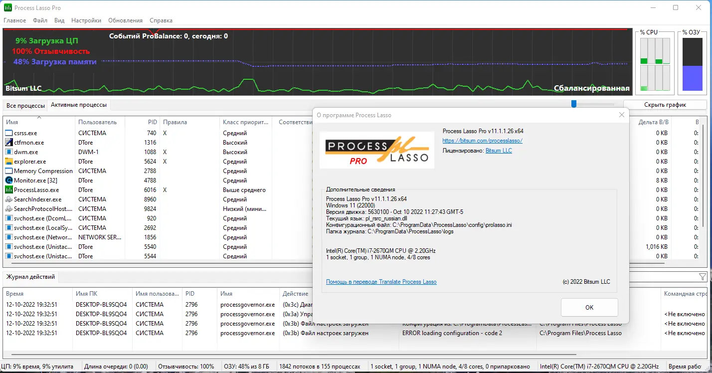 Process Lasso — это инструмент для тонкой настройки производительности операционной системы за счёт управления приоритетами запущенных процессов. Программа автоматически оптимизирует загрузку процессора, предотвращая подвисания и повышая отзывчивость системы даже при высокой нагрузке.
