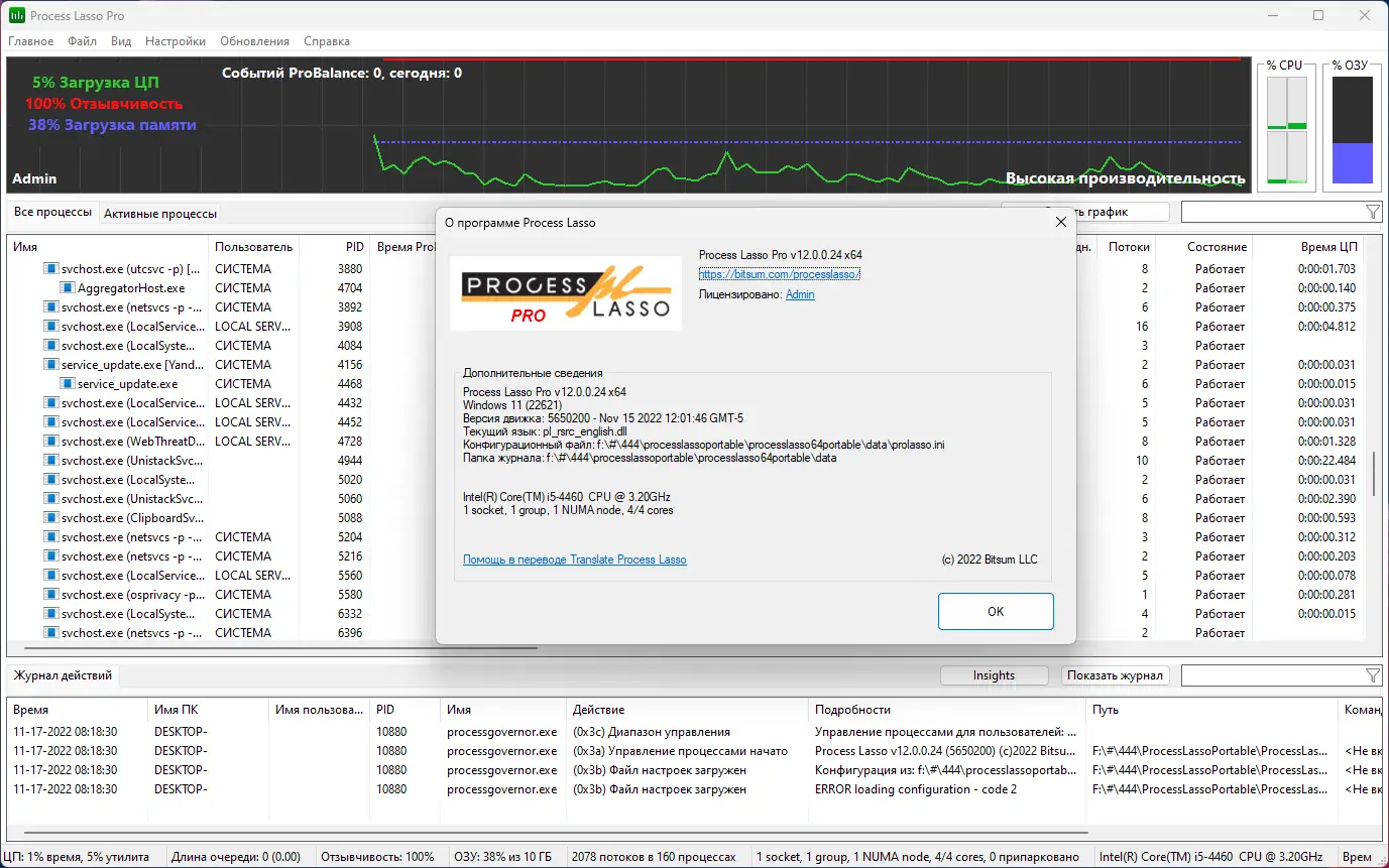 Process Lasso представляет собой мощный инструмент в категории системных утилит, предназначенный для тонкого контроля над выполняющимися процессами. В отличие от стандартного диспетчера задач, он не просто отображает информацию, а активно взаимодействует с системой, корректируя поведение программ в реальном времени. Это достигается за счёт динамического изменения приоритетов процессов, управления их привязкой к ядрам процессора и ограничения ресурсов для потенциально опасных или чрезмерно нагружающих компонентов.