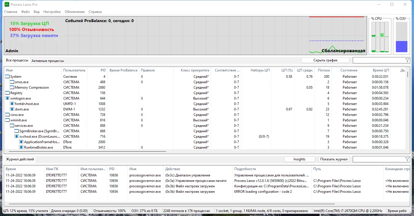 Process Lasso — это утилита для тонкой настройки и управления процессами в операционной системе Windows, обеспечивающая высокую отзывчивость и стабильность работы. Программа автоматически регулирует приоритеты задач, предотвращая перегрузку процессора и замедление системы.