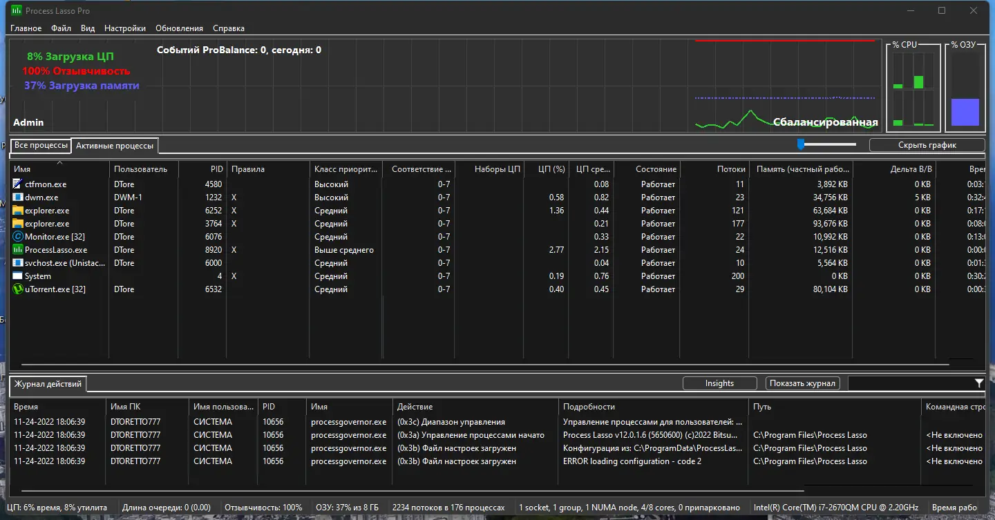 Работа с Process Lasso