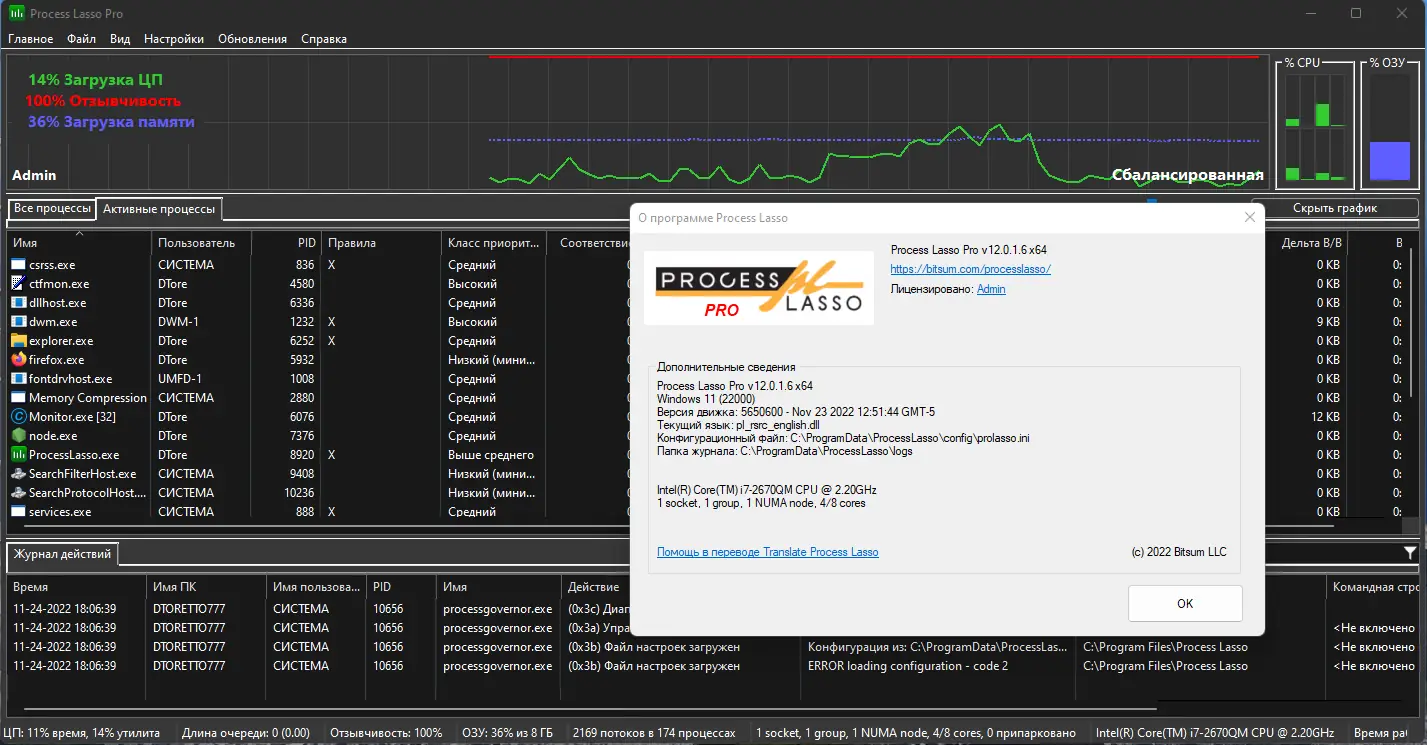 Process Lasso представляет собой системную утилиту, разработанную для оптимизации производительности компьютера за счёт интеллектуального управления запущенными процессами. Она отслеживает поведение программ в реальном времени и при необходимости корректирует их приоритеты, чтобы предотвратить зависания и лаги.