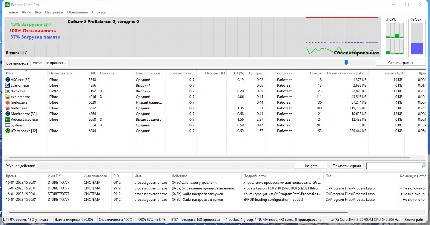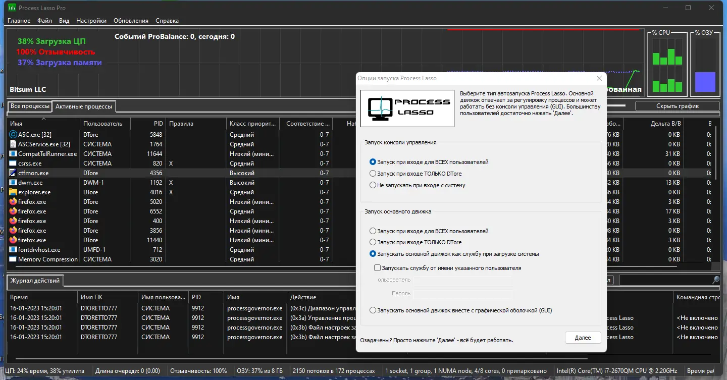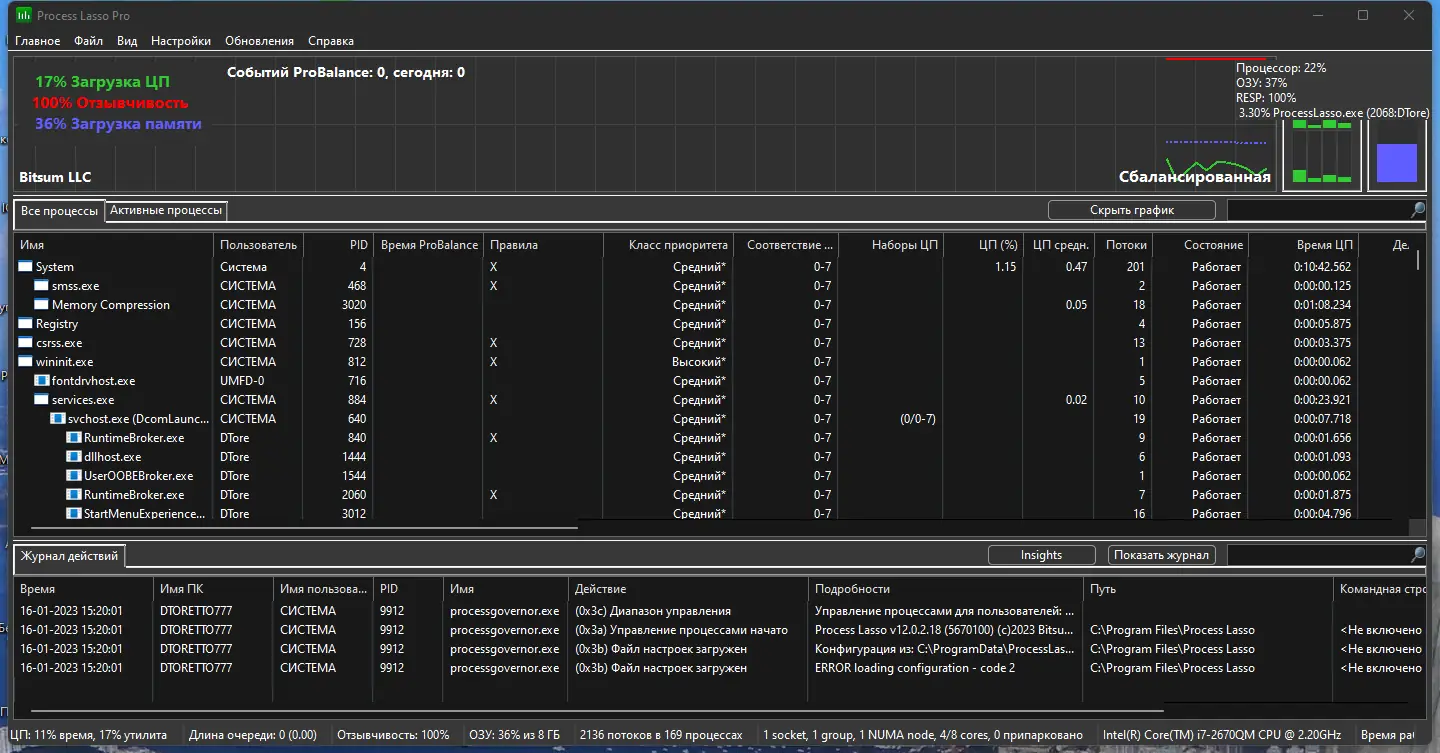 Process Lasso демонстрирует высокую эффективность в повседневной эксплуатации, особенно на системах со слабым или средним уровнем производительности. Программа работает в фоне с минимальным потреблением ресурсов, не мешая основной деятельности пользователя. Однако, как и любое ПО подобного типа, она имеет свои ограничения, связанные с архитектурой операционной системы и уровнем доступа к системным процессам.