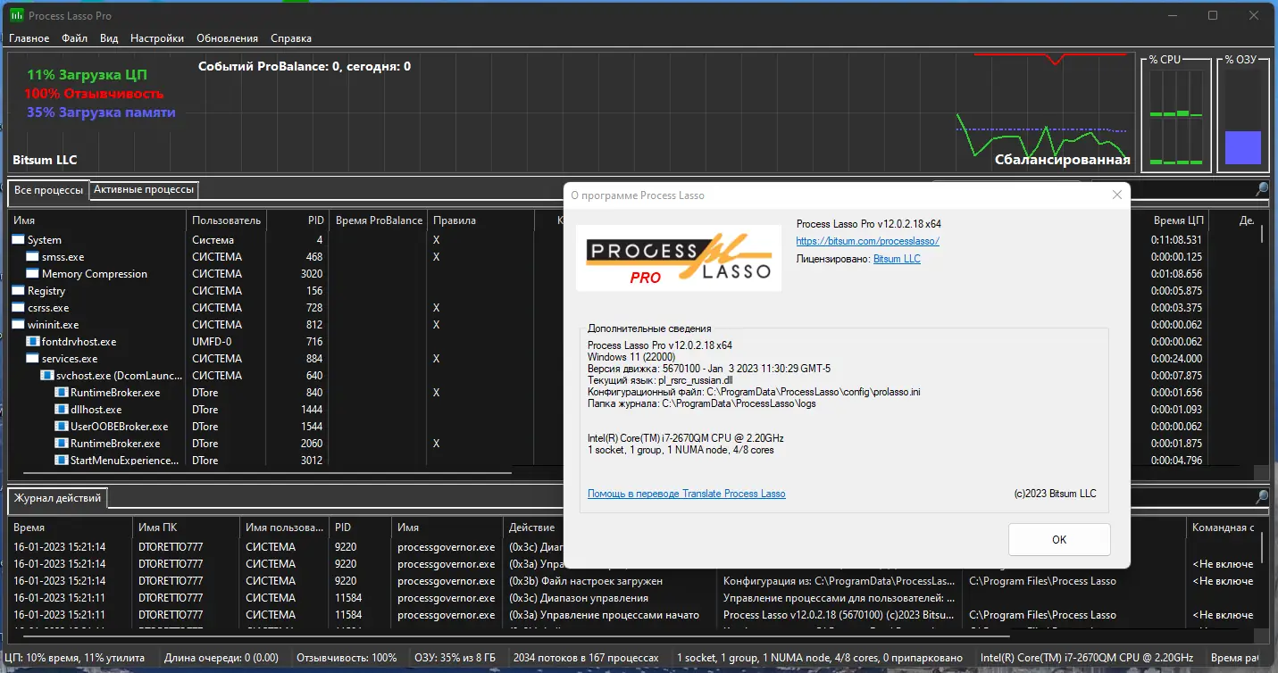 Process Lasso представляет собой инструмент для тонкой настройки поведения процессов в системе Windows. В отличие от стандартного диспетчера задач, он не просто отображает информацию о запущенных приложениях, но и активно вмешивается в их выполнение, корректируя приоритеты и распределение ресурсов. Это особенно полезно при одновременной работе множества программ, когда система начинает тормозить из-за перегрузки процессора. Утилита помогает избежать лагов и зависаний, сохраняя высокую отзывчивость даже под нагрузкой.