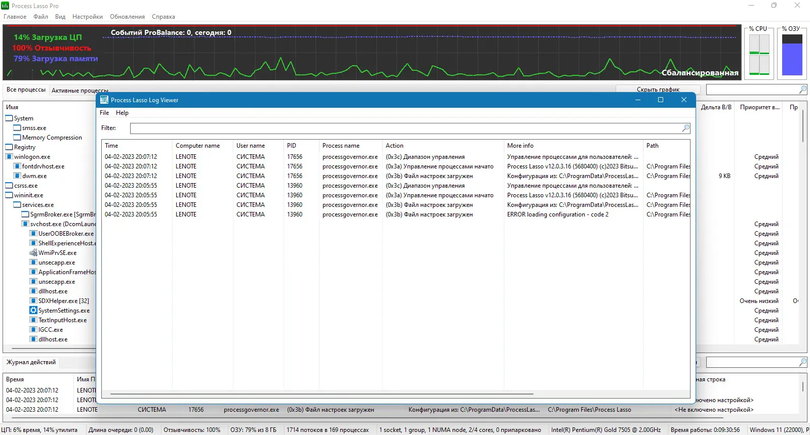 Process Lasso — это системная утилита, предназначенная для управления процессами в операционной системе Windows с целью повышения отзывчивости и стабильности работы компьютера. Программа автоматически регулирует приоритеты запущенных задач, предотвращая перегрузку центрального процессора и обеспечивая плавную работу интерфейса даже при высокой нагрузке.