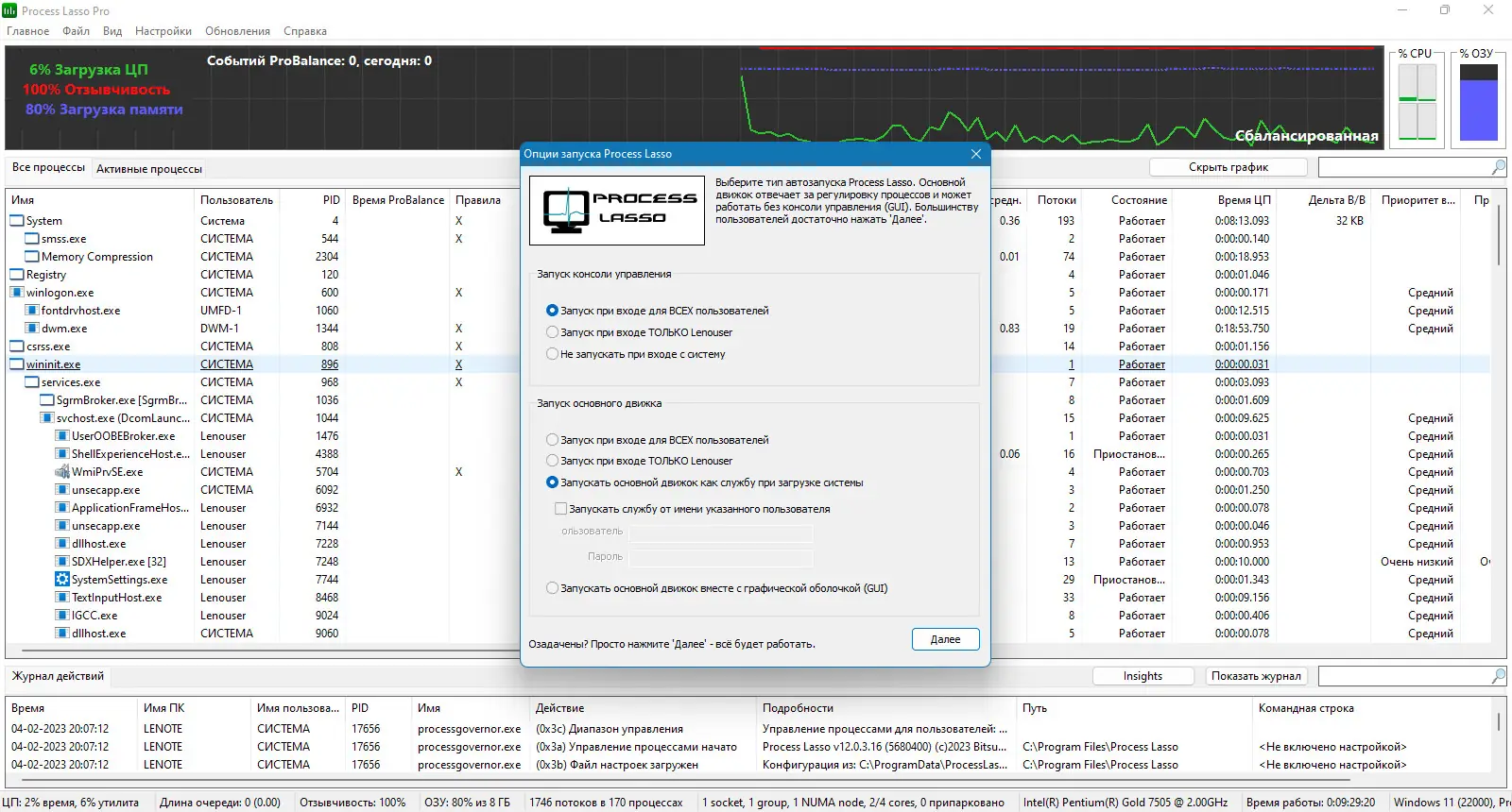 Process Lasso представляет собой инструмент для тонкой настройки поведения процессов в реальном времени. Он не завершает программы принудительно, а изменяет их приоритеты и распределение ресурсов, позволяя системе оставаться отзывчивой. Основная технология — ProBalance — динамически корректирует приоритеты фоновых процессов, которые начинают чрезмерно нагружать ЦП, не допуская зависаний и лагов. Утилита поддерживает как ручное управление, так и полностью автоматический режим работы, адаптируясь под стиль использования компьютера. Это делает её полезной как для обычных пользователей, так и для системных администраторов.