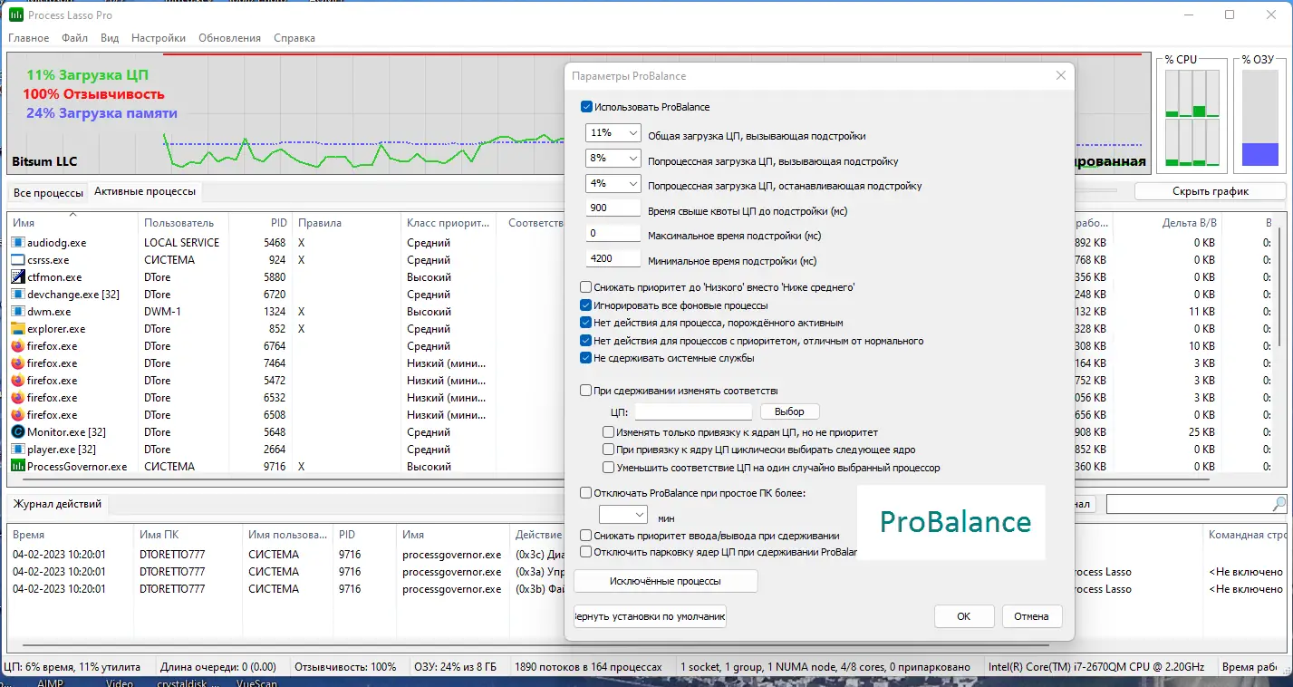 Работа с Process Lasso