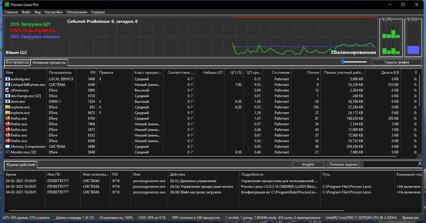 Преимущества Process Lasso заключаются в её способности поддерживать высокую отзывчивость системы даже при значительной нагрузке. Программа работает в фоне с минимальным потреблением ресурсов и не требует постоянного внимания пользователя. В то же время, утилита предоставляет продвинутым пользователям широкие возможности для тонкой настройки. Однако, из-за специфики своей работы, она может быть избыточной для простых пользователей, чьи компьютеры не испытывают критической нагрузки.
