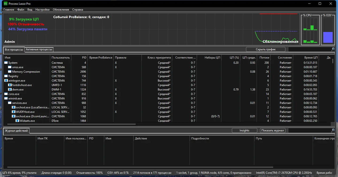 Process Lasso — это системная утилита, предназначенная для управления процессами в операционной системе Windows с целью повышения отзывчивости и стабильности. Программа автоматически регулирует приоритеты запущенных приложений, предотвращая перегрузку центрального процессора. Технология ProBalance обеспечивает плавную работу системы даже при высокой нагрузке.