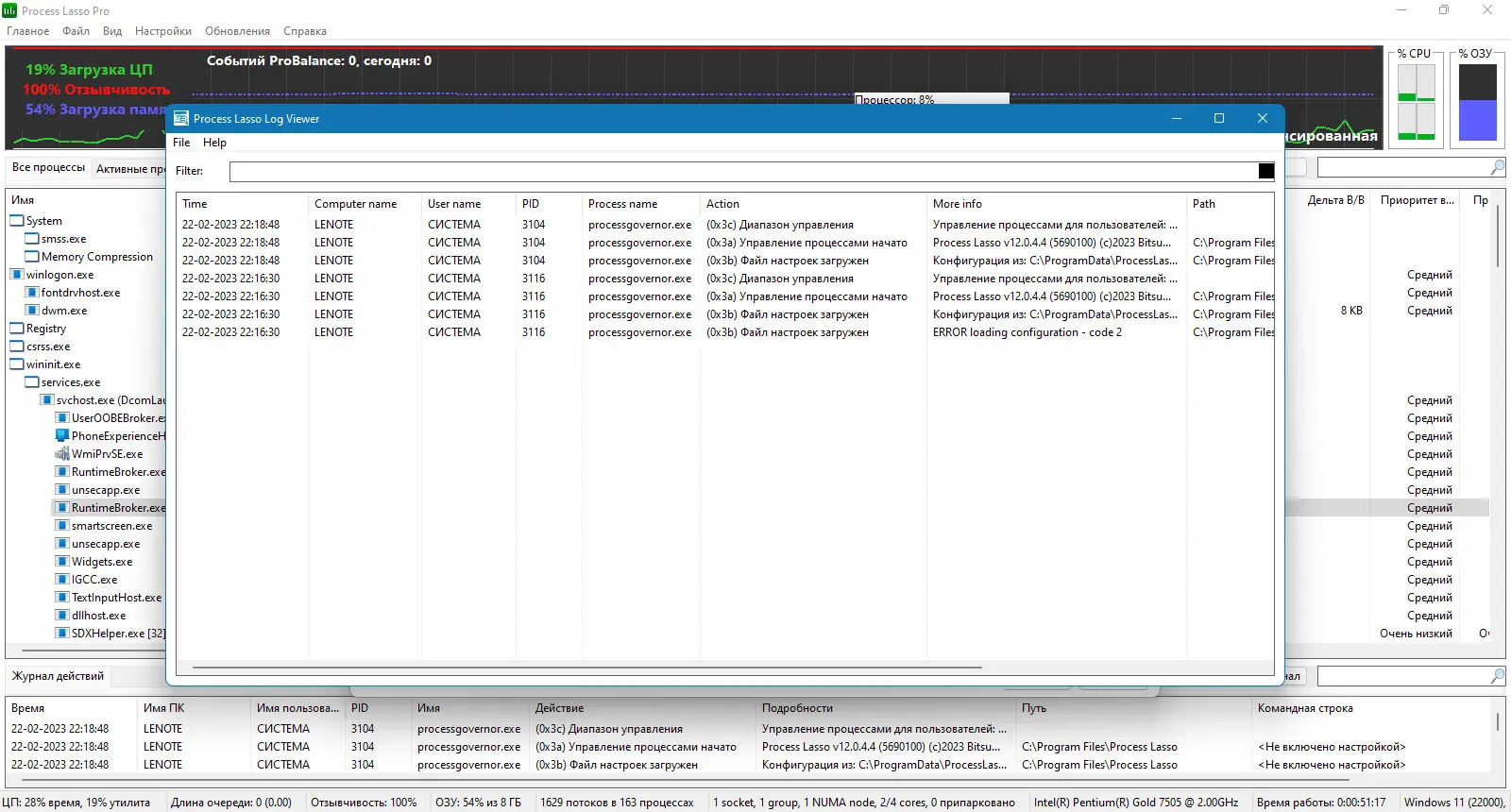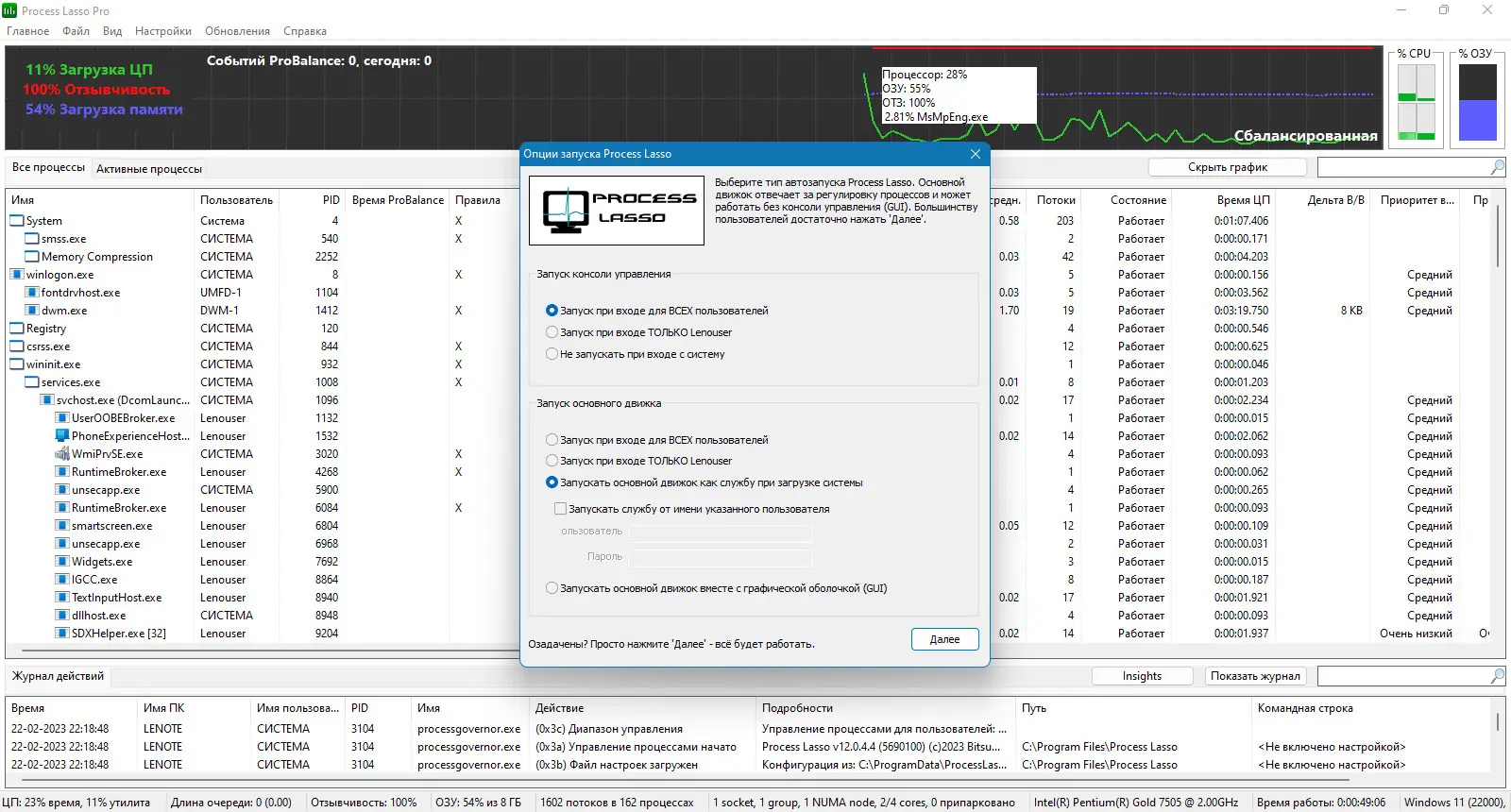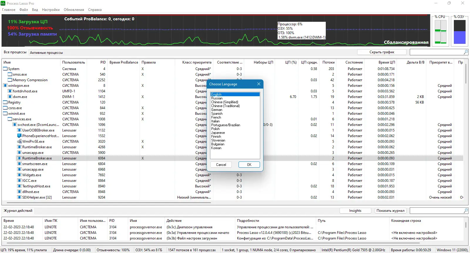 Работа с Process Lasso