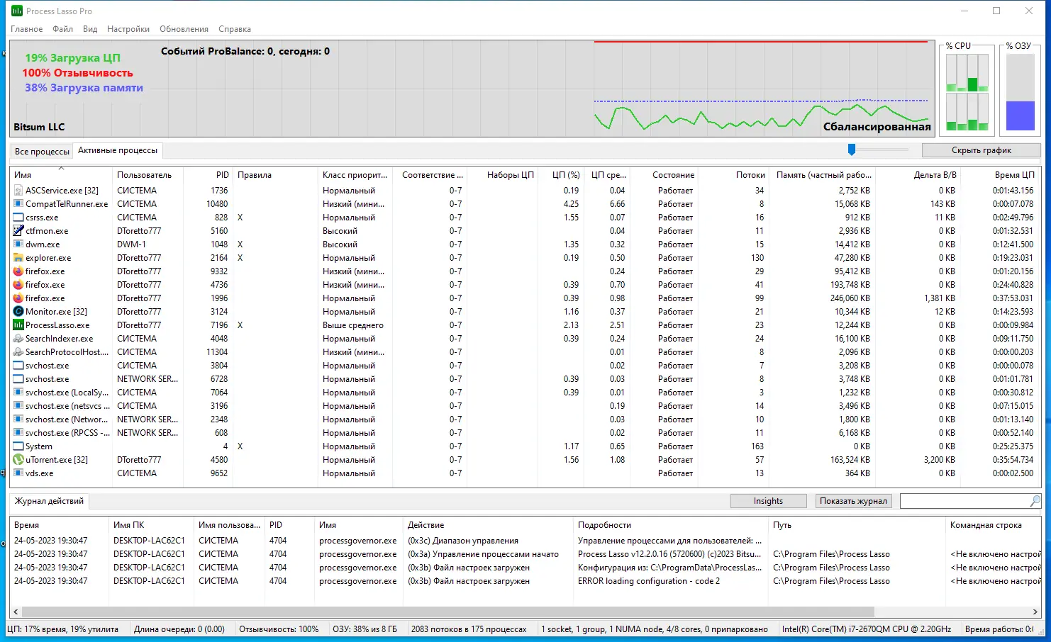 Process Lasso сочетает в себе мощные функции системного контроля с минимальным влиянием на производительность. Программа работает эффективно как на слабых, так и на мощных конфигурациях, адаптируясь под текущую нагрузку. При этом она не требует постоянного контроля со стороны пользователя — большинство задач решается автоматически. Однако, как и любое ПО подобного класса, утилита имеет свои ограничения, особенно в вопросах совместимости и доступности расширенных функций.