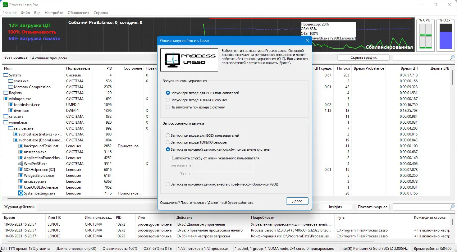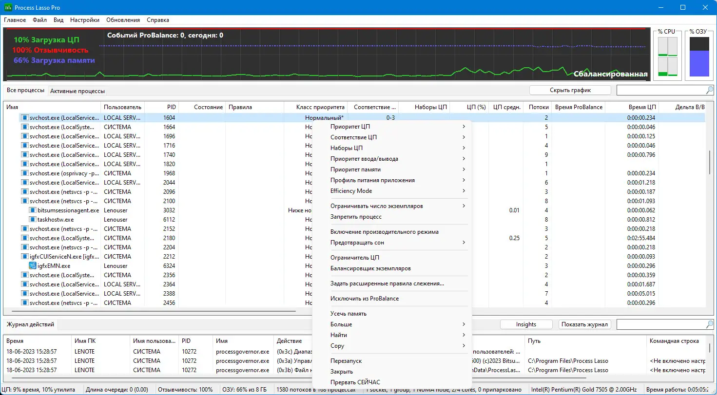 Process Lasso предназначена для управления активными процессами в реальном времени, обеспечивая баланс между фоновыми и активными задачами. В отличие от стандартного диспетчера задач, утилита использует продвинутые алгоритмы, такие как технология ProBalance, которая динамически корректирует приоритеты процессов. Это позволяет избежать ситуации, когда одна программа захватывает все ресурсы ЦП, мешая работе других компонентов системы.