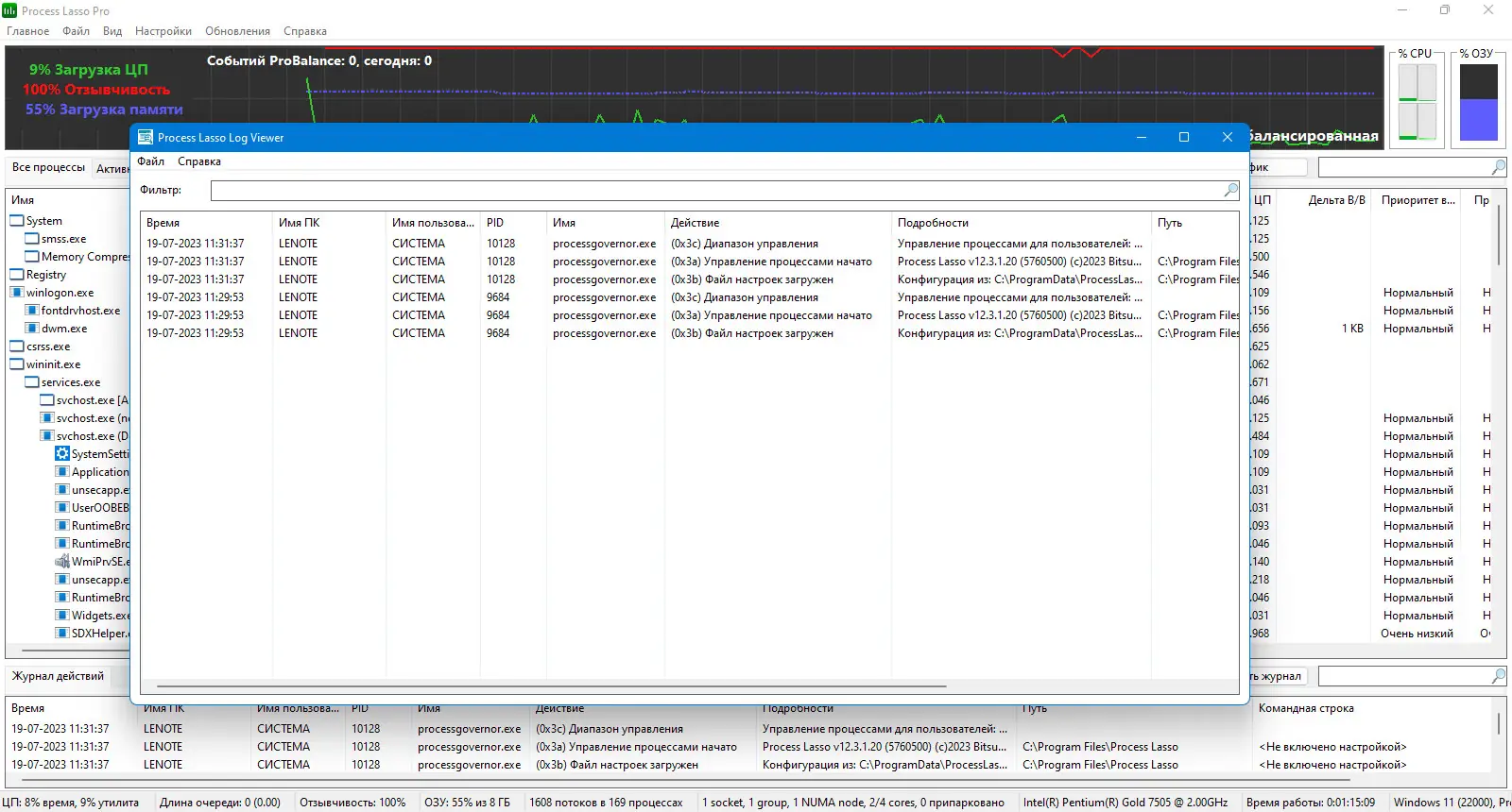 Программа Process Lasso предназначена для оптимизации работы операционной системы за счёт умного управления процессами, запущенными в фоне и на переднем плане. Она отслеживает поведение приложений, особенно тех, которые интенсивно используют ресурсы процессора, и при необходимости корректирует их приоритет. Это предотвращает подвисания и задержки в работе активных задач, что особенно важно при выполнении мультимедийных операций, игр или многозадачности.