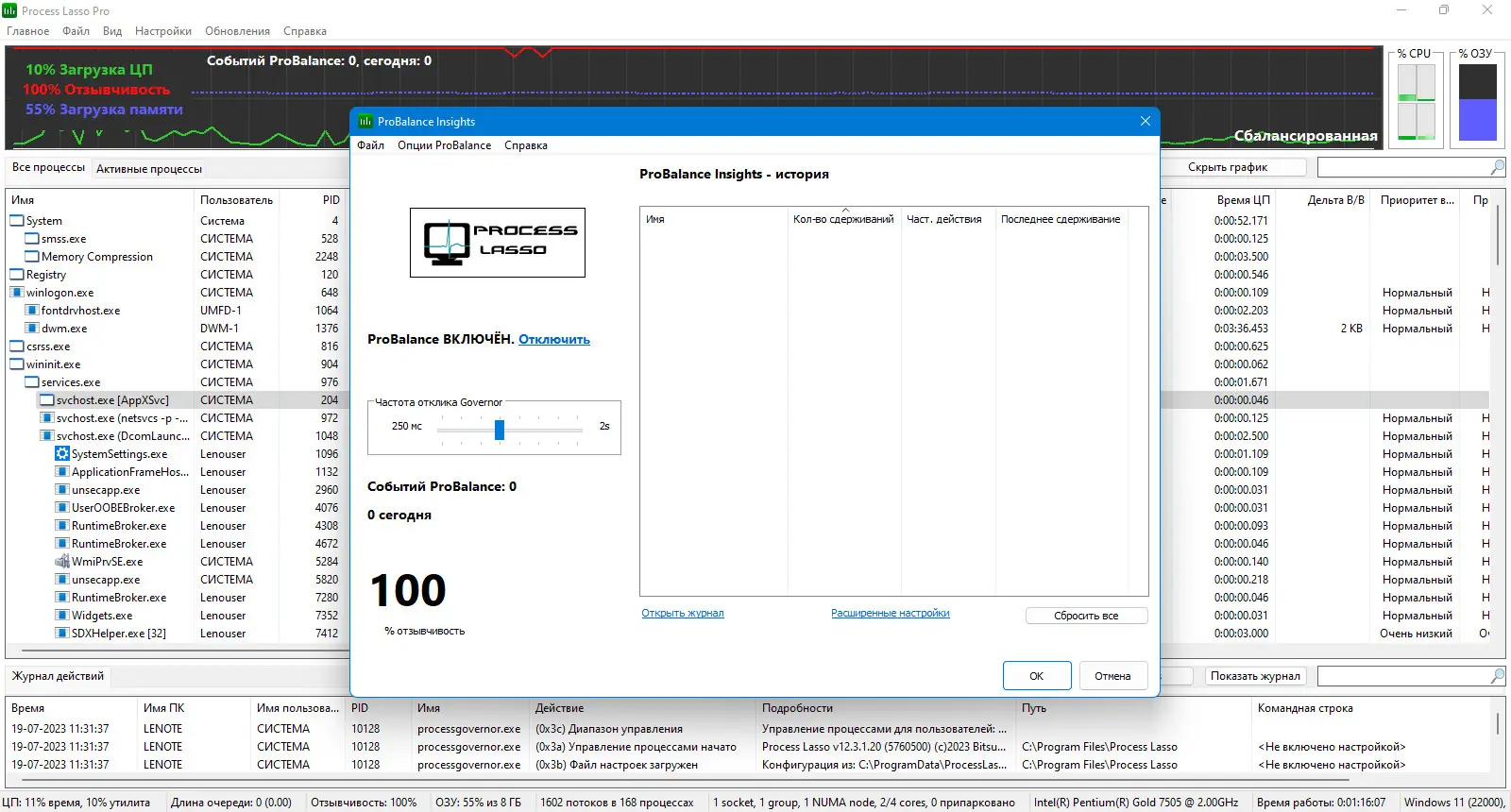 - Автоматическое управление приоритетами через технологию ProBalance.