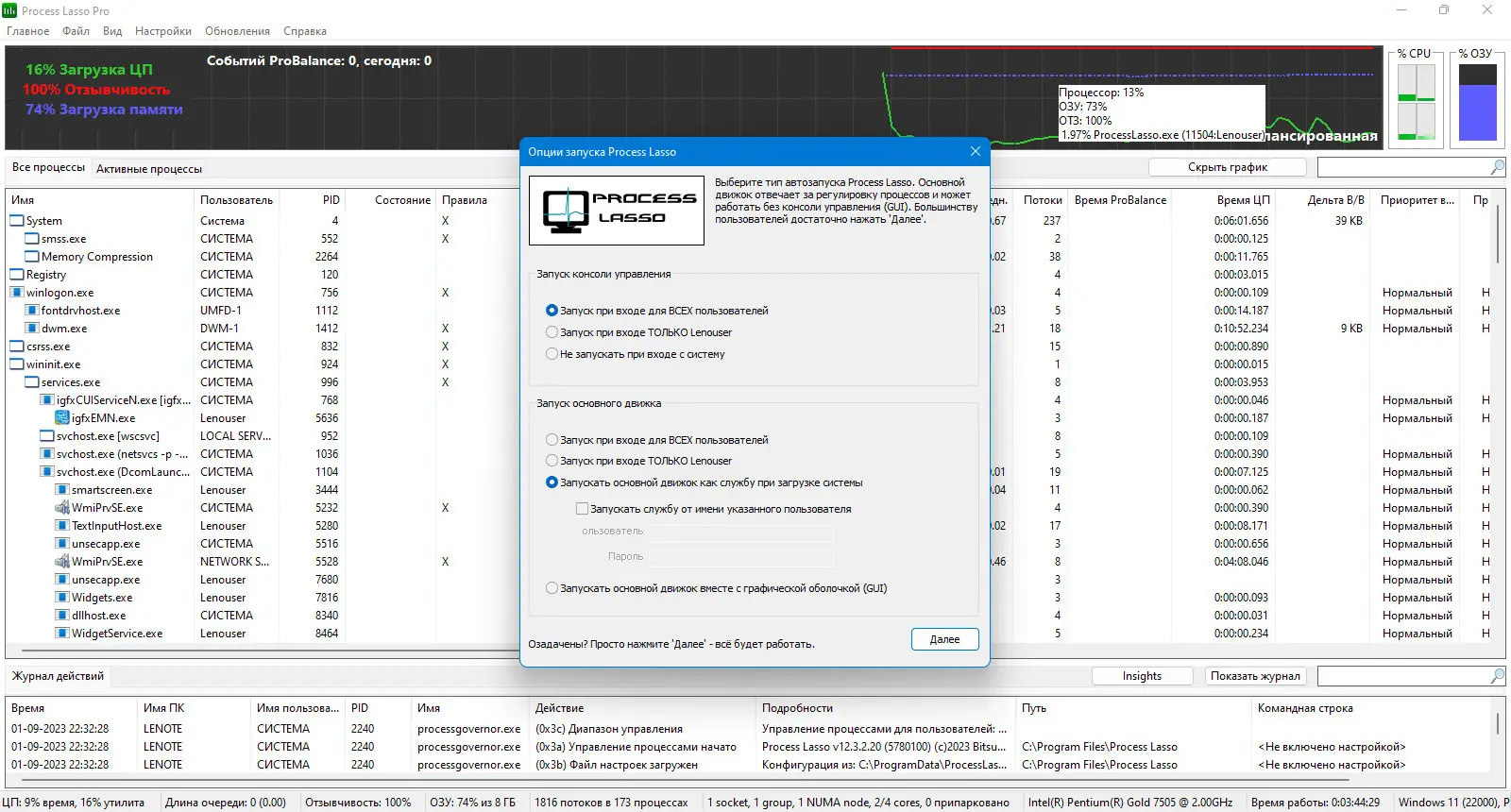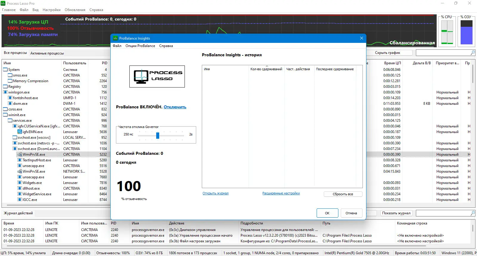 Process Lasso демонстрирует высокую эффективность в повседневной эксплуатации. Благодаря продуманной архитектуре, утилита практически не потребляет системные ресурсы, работая в фоне с минимальным влиянием на производительность. Технология ProBalance адаптируется к текущей нагрузке, предотвращая зависания даже при сбоях в отдельных приложениях. Однако, как и любой инструмент управления процессами, она требует определённого понимания принципов работы операционной системы для корректной настройки.