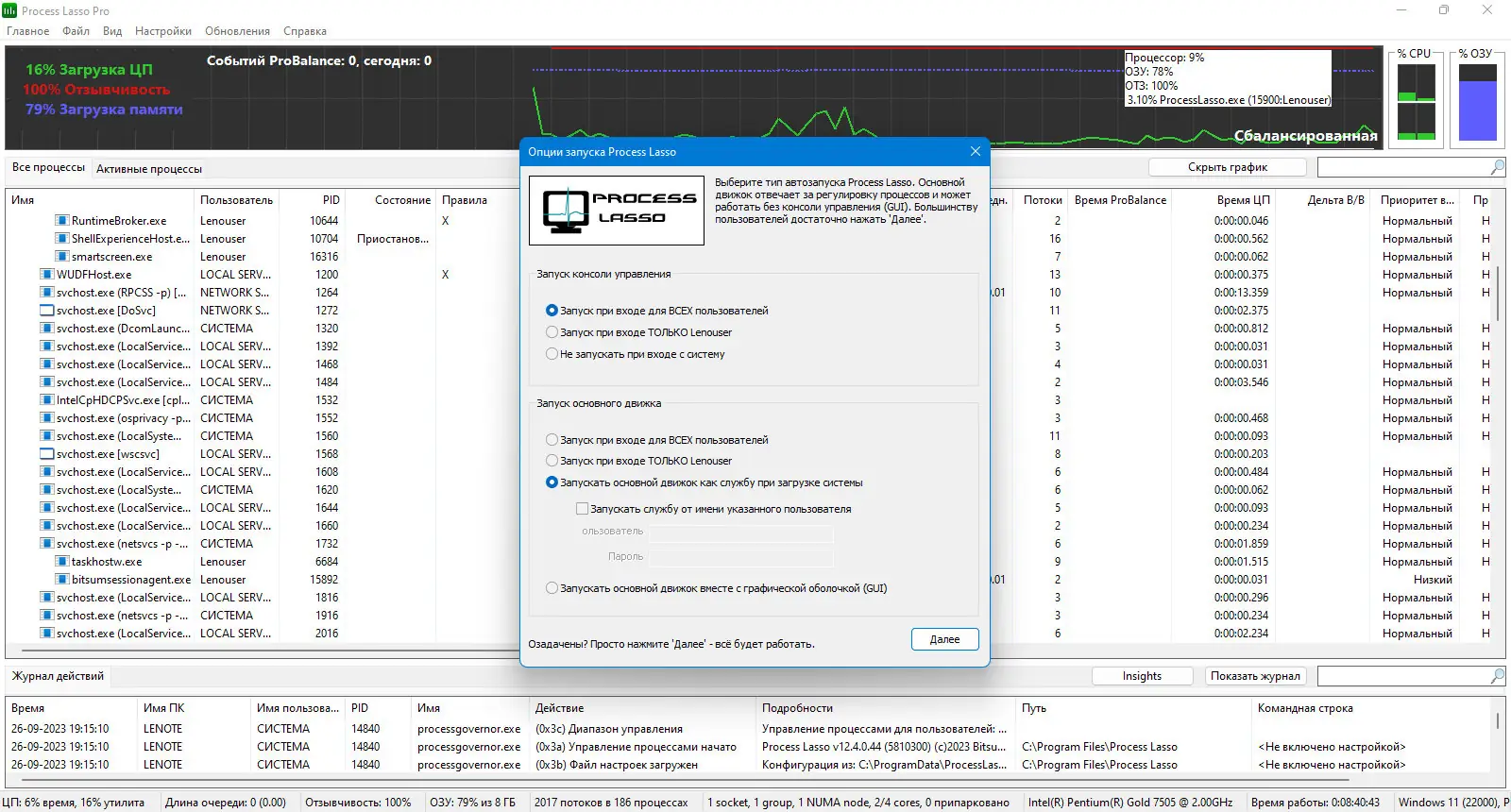 Process Lasso — это инструмент для оптимизации производительности операционной системы за счёт управления приоритетами запущенных процессов. Программа автоматически регулирует нагрузку на центральный процессор, предотвращая замедление системы и обеспечивая стабильную работу даже при высокой загрузке.