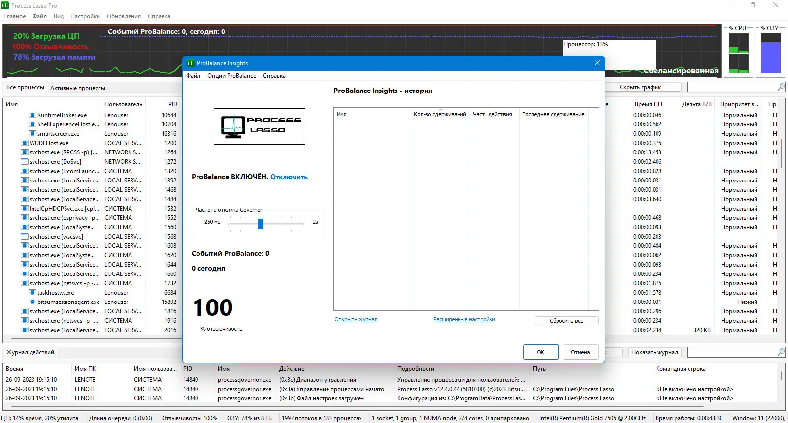 Process Lasso представляет собой системную утилиту, ориентированную на поддержание высокой отзывчивости компьютера. Она отслеживает активность запущенных приложений и при обнаружении процессов с чрезмерным потреблением ресурсов ЦП автоматически корректирует их приоритеты. Это особенно полезно в тех случаях, когда фоновые задачи начинают мешать работе с основными программами. Основная технология, лежащая в основе приложения, — ProBalance, которая динамически балансирует распределение ресурсов, минимизируя задержки и лаги.
