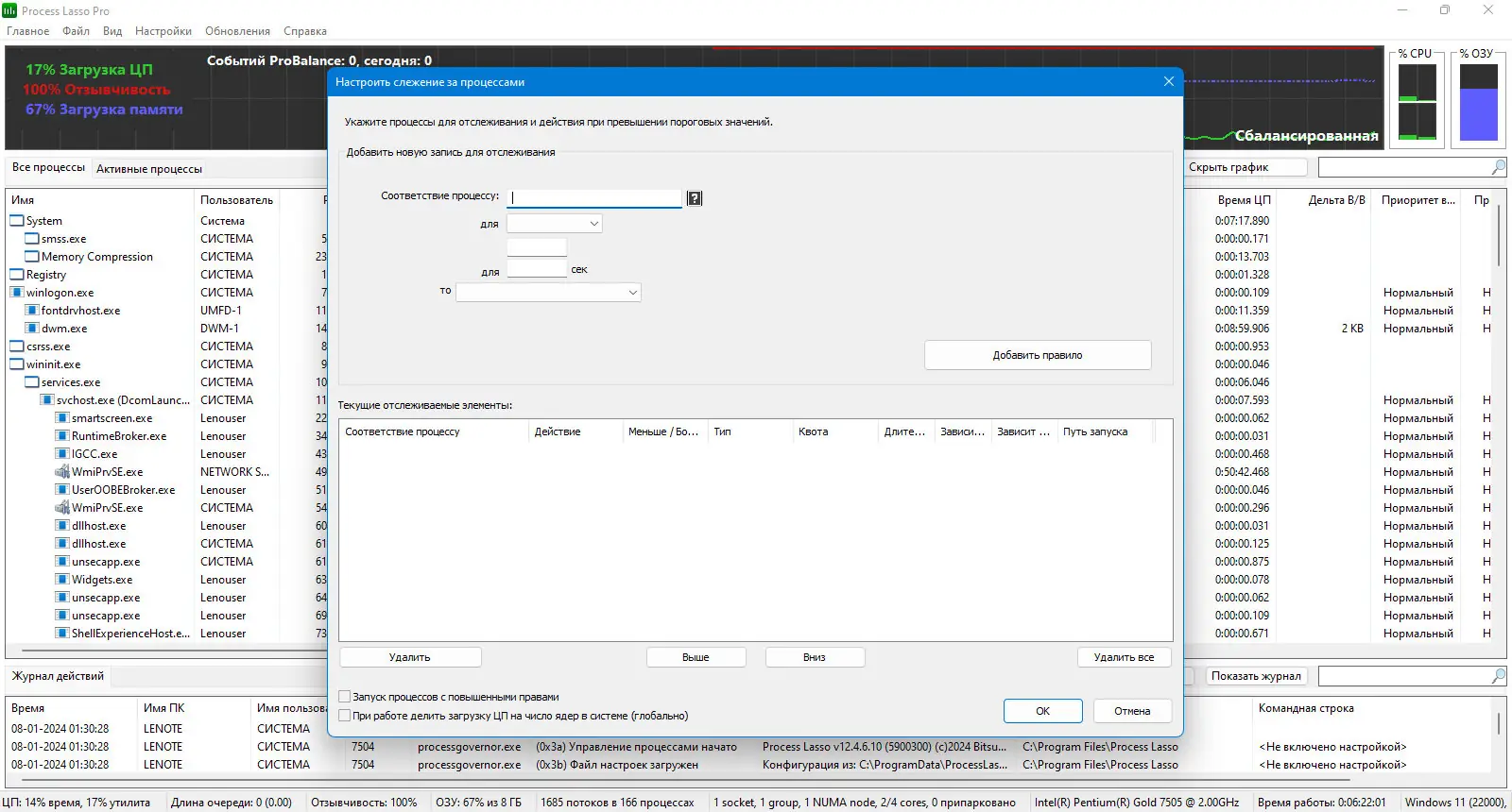 Process Lasso представляет собой мощный инструмент для тонкой настройки поведения запущенных приложений в фоне и на переднем плане. В отличие от стандартных средств Windows, она активно вмешивается в распределение ресурсов, предотвращая ситуации, когда один процесс полностью блокирует центральный процессор. Благодаря технологии ProBalance, система остаётся отзывчивой даже при интенсивной нагрузке.