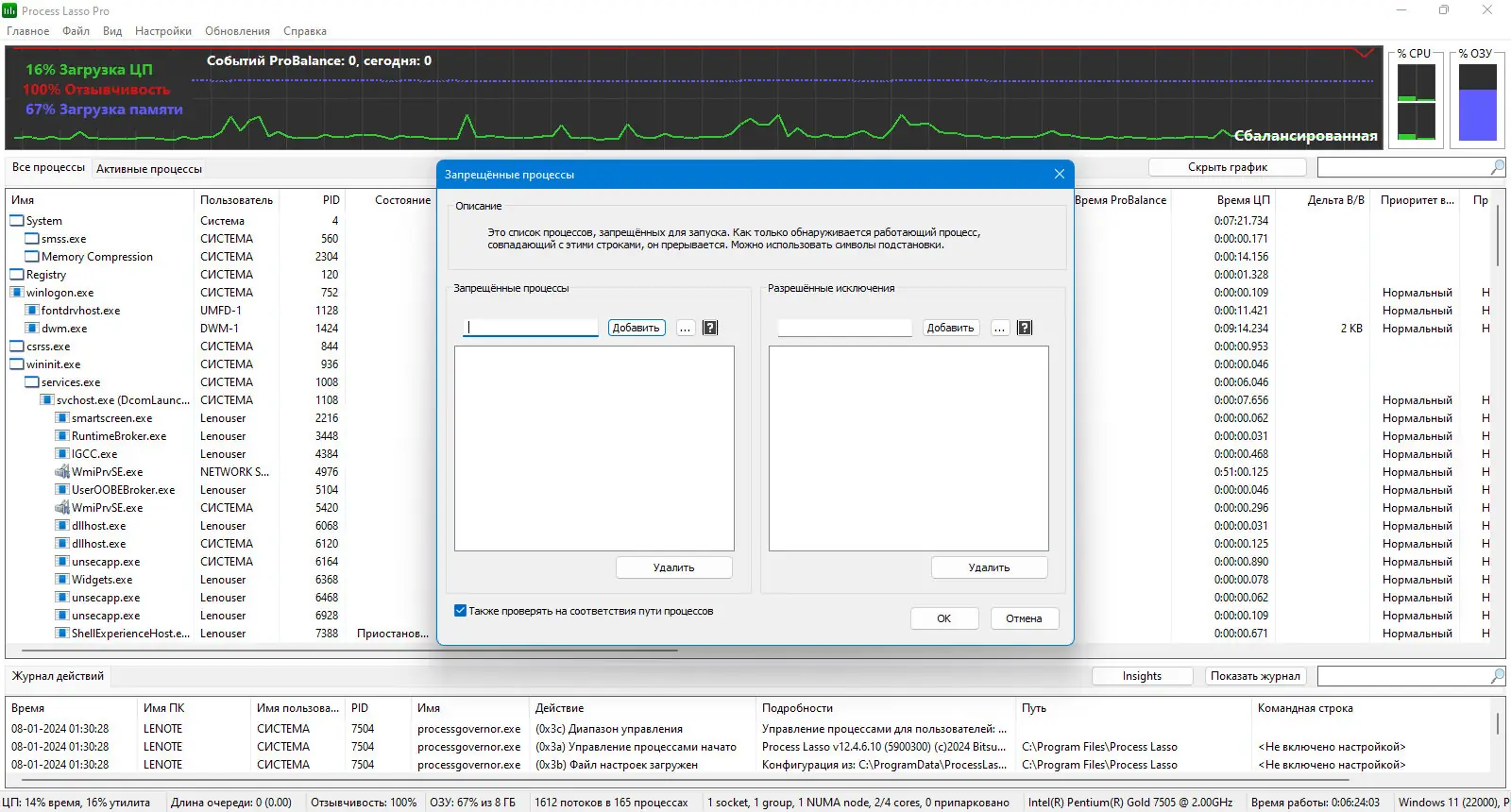 Process Lasso — это системная утилита, предназначенная для оптимизации производительности операционной системы за счёт управления приоритетами запущенных процессов. Программа автоматически регулирует нагрузку на центральный процессор, предотвращая зависания и обеспечивая стабильную работу системы даже при высокой загрузке.