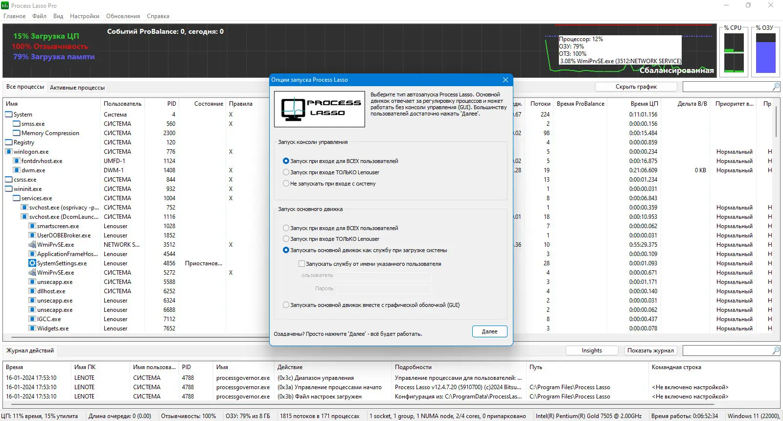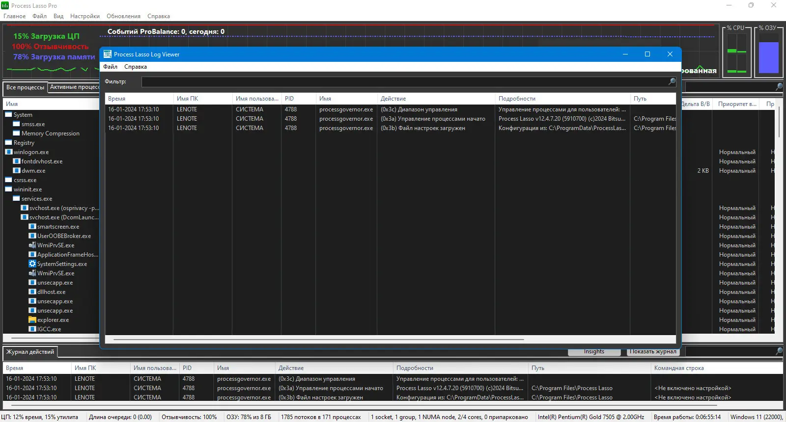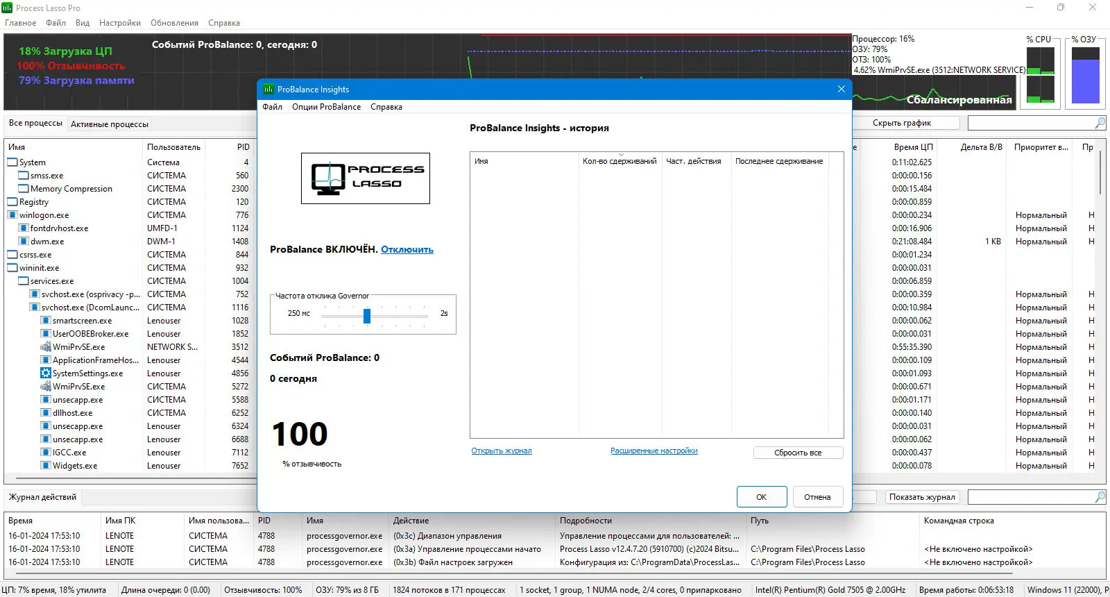 Process Lasso представляет собой инструмент управления производительностью, ориентированный на поддержание отзывчивости системы. В отличие от стандартных механизмов Windows, которые не ограничивают поведение приложений, потребляющих ресурсы, данная утилита активно вмешивается в работу процессов, предотвращая ухудшение производительности. Она особенно полезна на системах с ограниченными ресурсами или при длительной эксплуатации без перезагрузки.