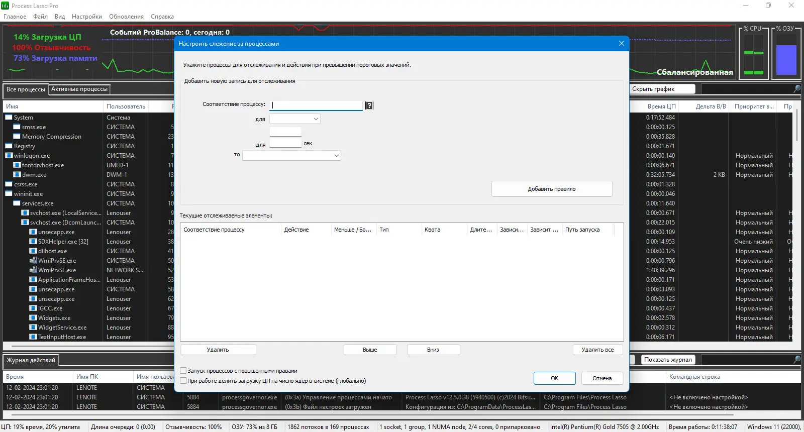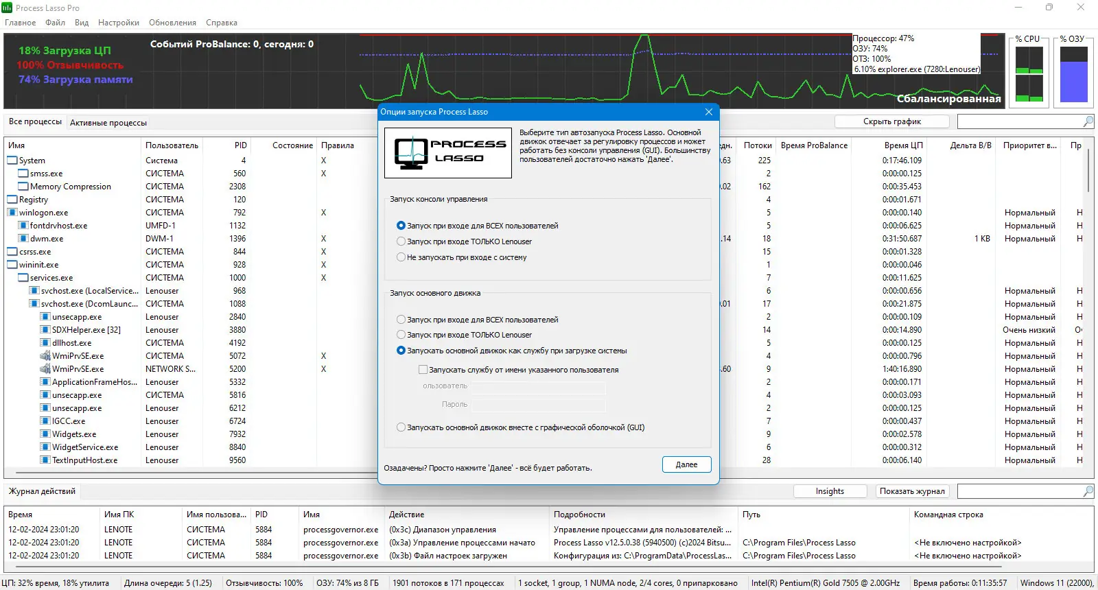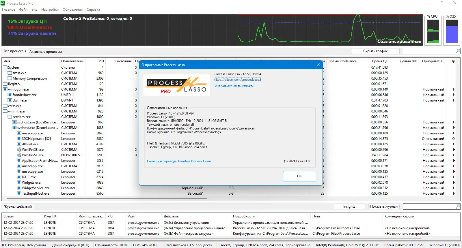 Process Lasso представляет собой инструмент для тонкой настройки поведения процессов в реальном времени. В отличие от стандартных средств Windows, которые не ограничивают активность процессов, эта утилита вмешивается при возникновении чрезмерной нагрузки, предотвращая замедление системы. Основной механизм работы — технология ProBalance, которая динамически регулирует приоритеты задач, освобождая ресурсы для критически важных операций.