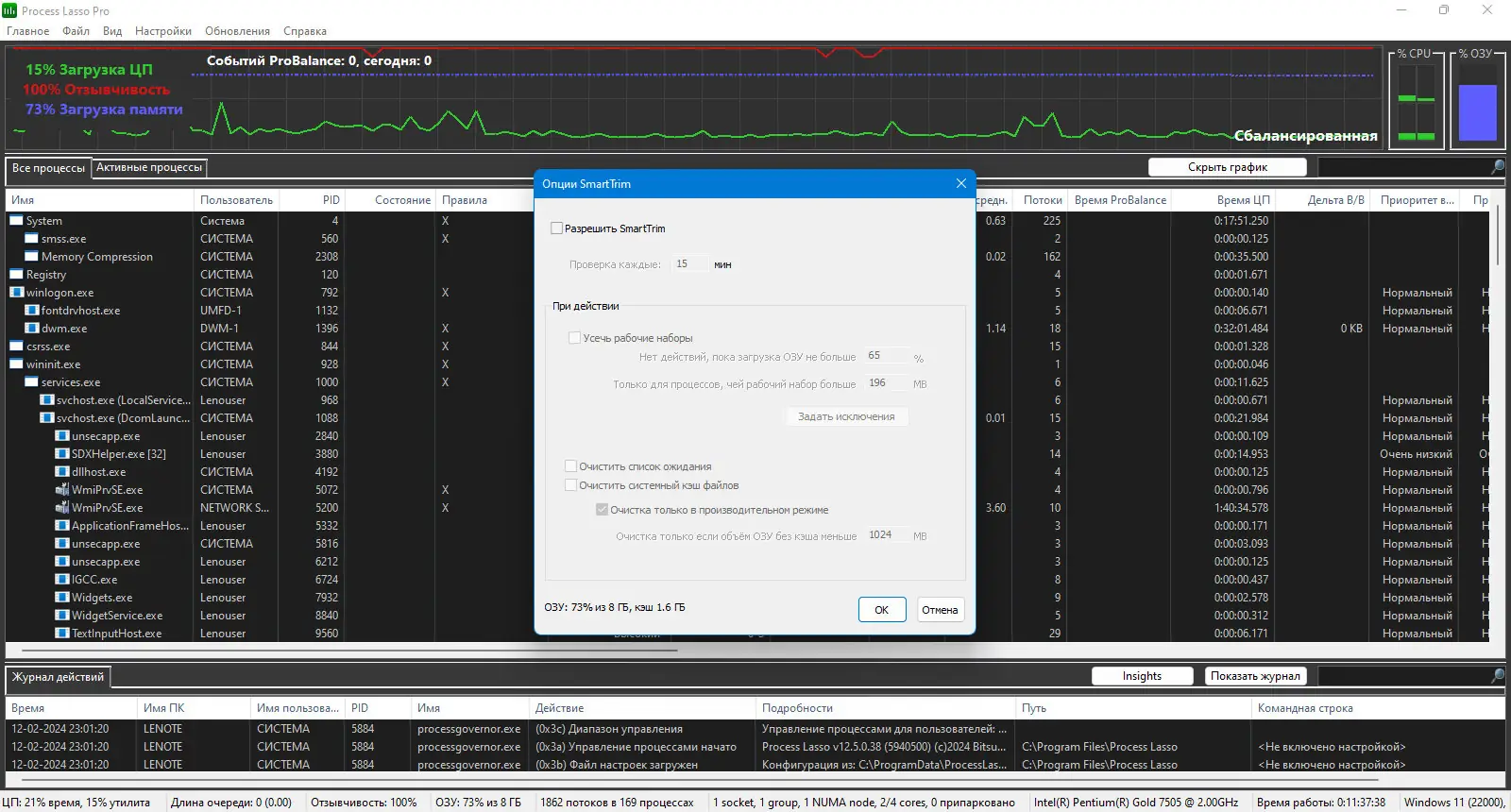 Process Lasso демонстрирует высокую эффективность в повседневной эксплуатации, особенно на системах со средними и слабыми ресурсами. Утилита способна значительно улучшить общее ощущение от работы с компьютером, предотвращая подтормаживания и зависания. Однако, как и любое программное обеспечение, она имеет свои ограничения.